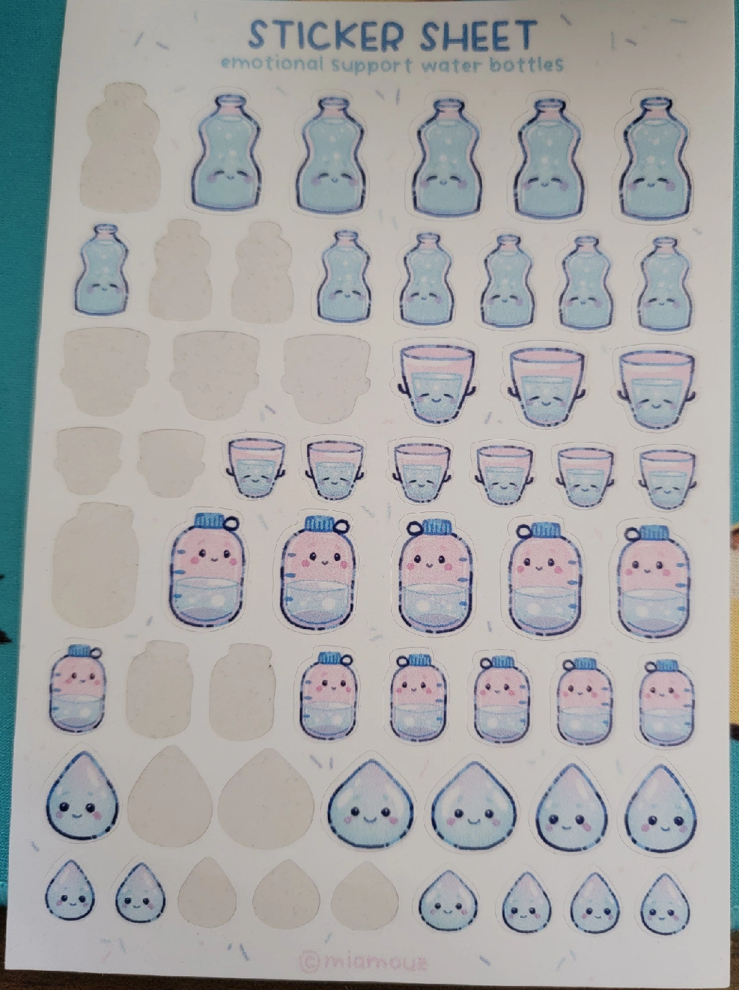 Cute sticker sheet with designs of water bottles, cups, and water droplets with smiley faces! Perfect for decorating your notebooks, laptops, or water bottles.