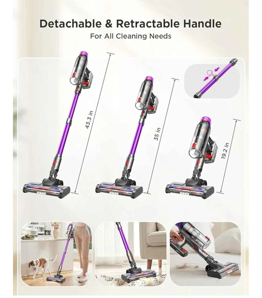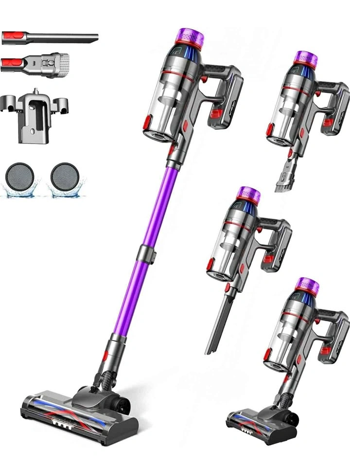 550W Ultra-Powerful Suction – Deep Carpet & Hard Floor Cleaning】Our cordless stick vacuum cleaner deep clean with true suction.Effectively removing deep-embedded dirt,pet hair,and debris from high-pile carpets,area rugs,and hard floors without loss of suction.(3-Level Suction Control: Low (Daily Cleaning) Medium (Carpets) High (Deep Cleaning, Maximum Suction).