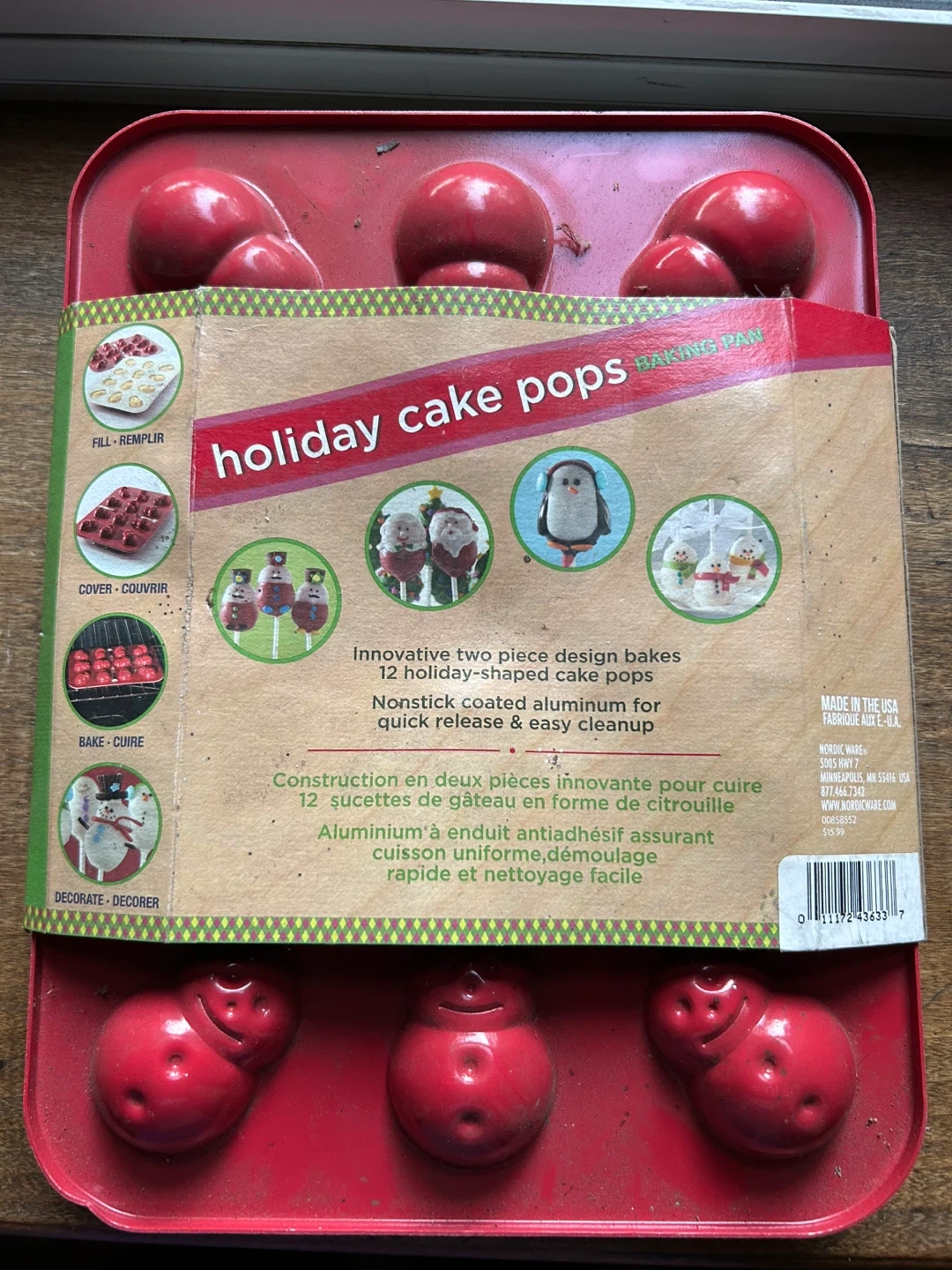 Red Nordic ware 12 snowman cake pop baking mold, like new- fun project for kids.