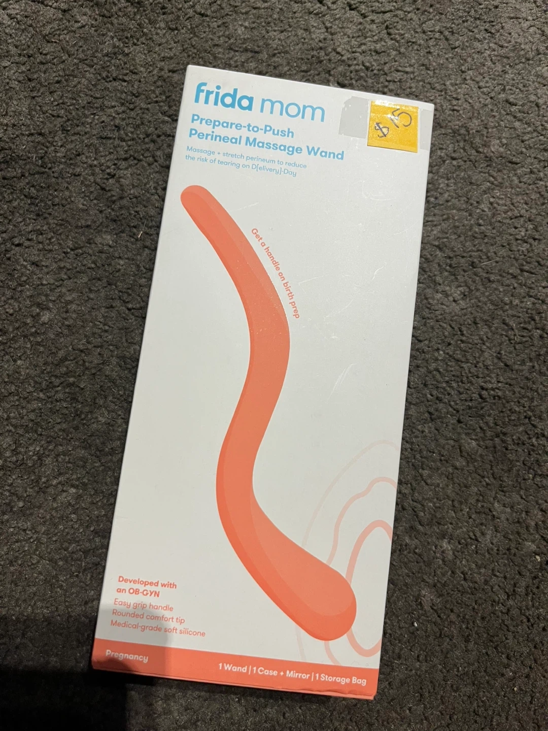 Selling a Frida Mom Prepare-to-Push Perineal Massage Wand. It's designed to massage and stretch the perineum to reduce the risk of tearing during delivery. The wand features an easy grip handle and a rounded comfort tip, made with medical-grade soft silicone. It comes with 1 wand, 1 case, a mirror, and a storage bag!