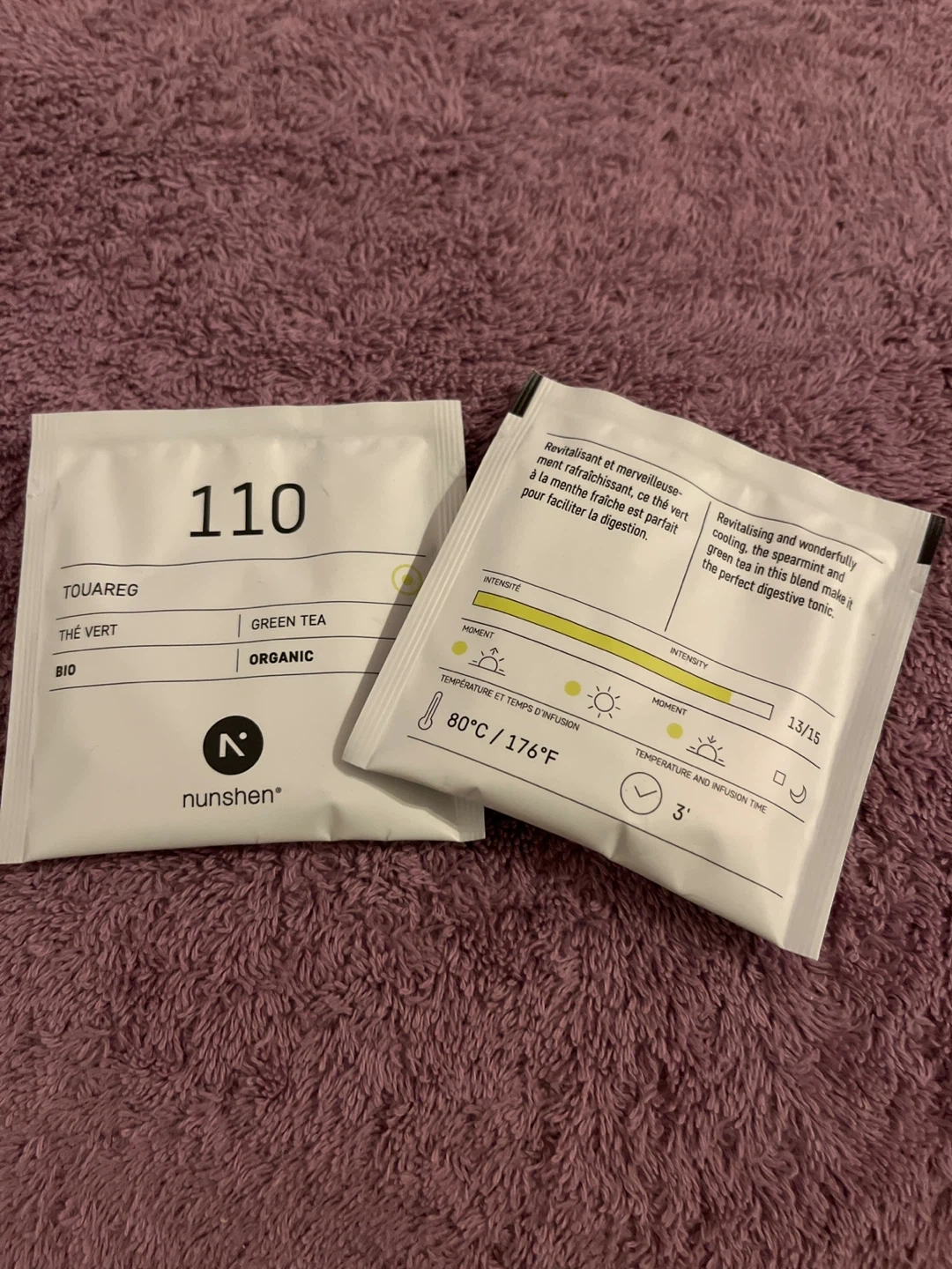 Giving away Nunshen Touareg Green Tea, which is organic! This green tea is revitalizing and wonderfully cooling, with spearmint to make it the perfect digestive tonic. The intensity is 13/15. Enjoy!