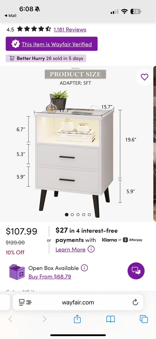 Wayfair nightstand, only 3 months old (purchased in January) and in excellent condition