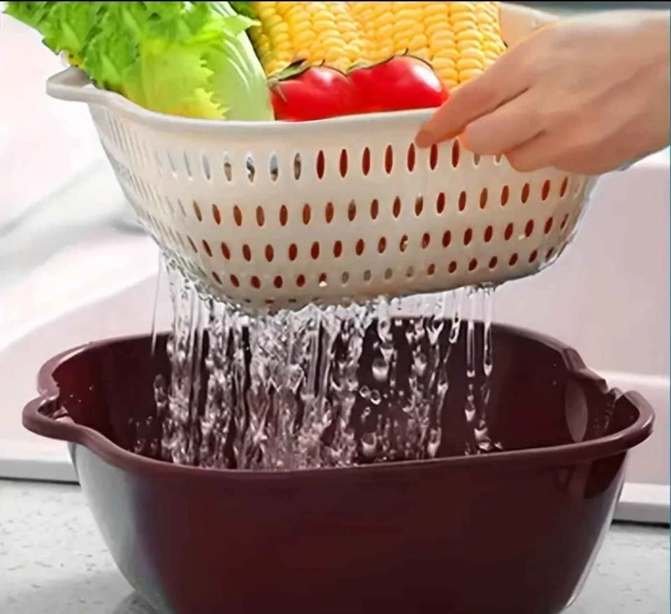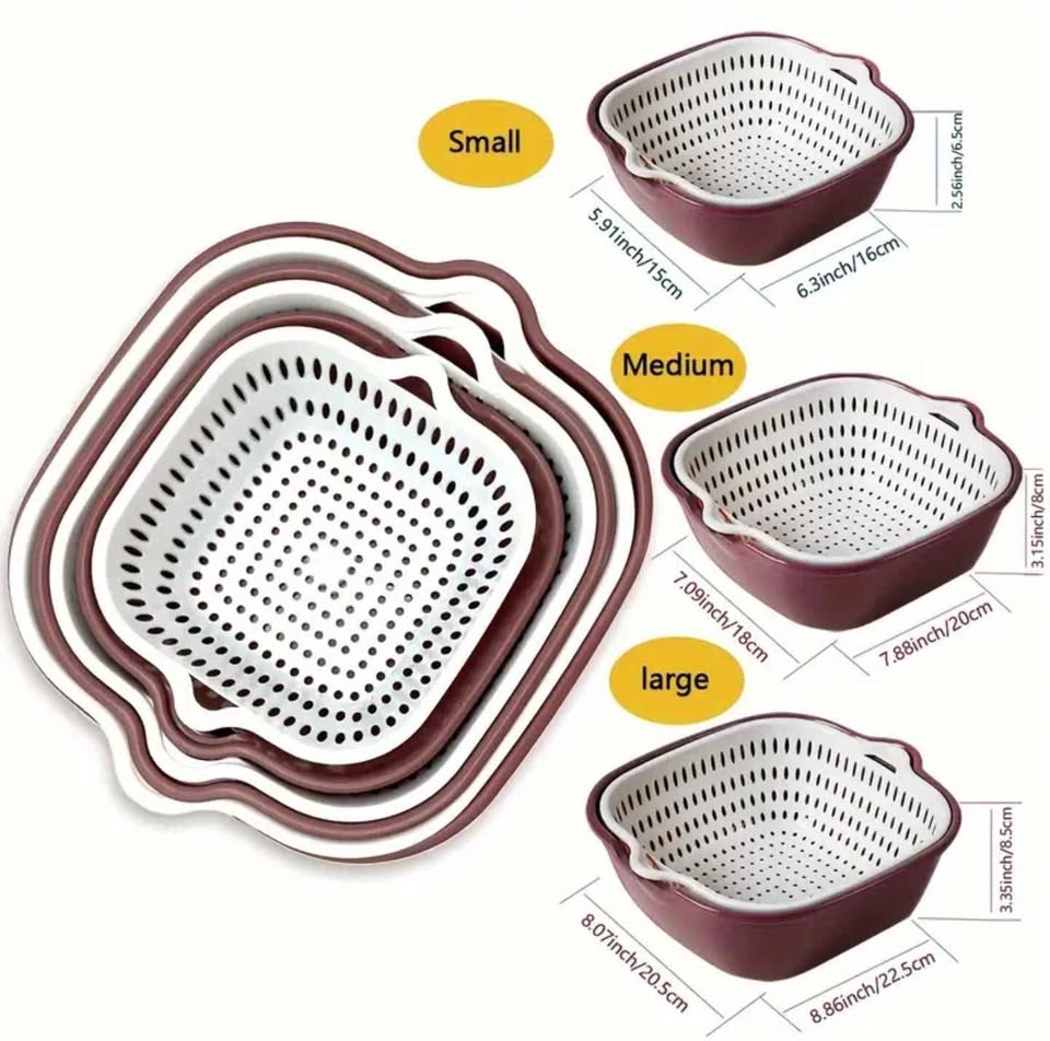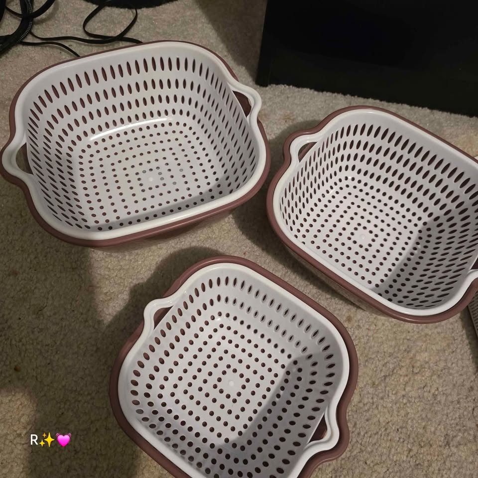 6PCS Double Layered Drain Basin and Basket, Kitchen Colander