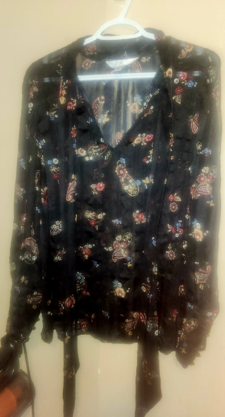 Selling a gently used A.N.A. blouse in size 2X. It features a beautiful floral pattern on a black background. Perfect for adding a touch of elegance to your wardrobe! Pick up only unless near intersection of Oxford and Gammage Street.
