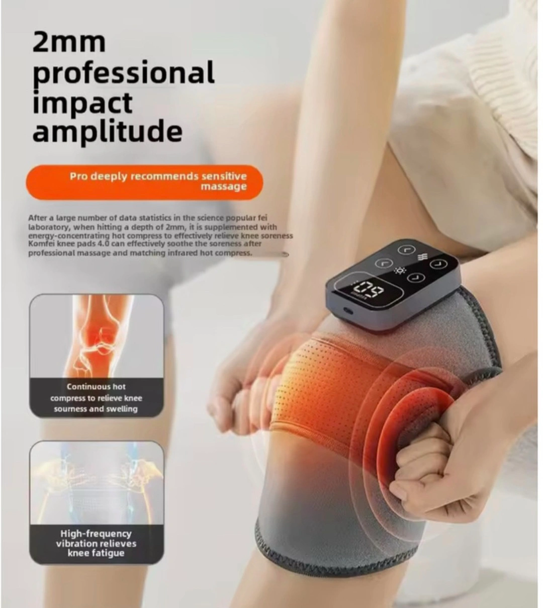 I'm selling this brand new knee massager with heat and vibration. This device is designed to provide soothing relief to sore knees with its continuous hot compress and high-frequency vibration, effectively reducing knee fatigue and swelling.