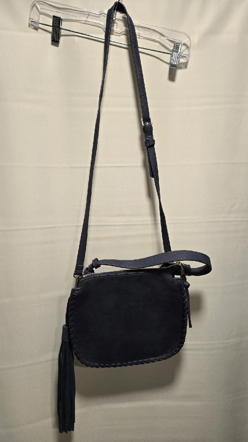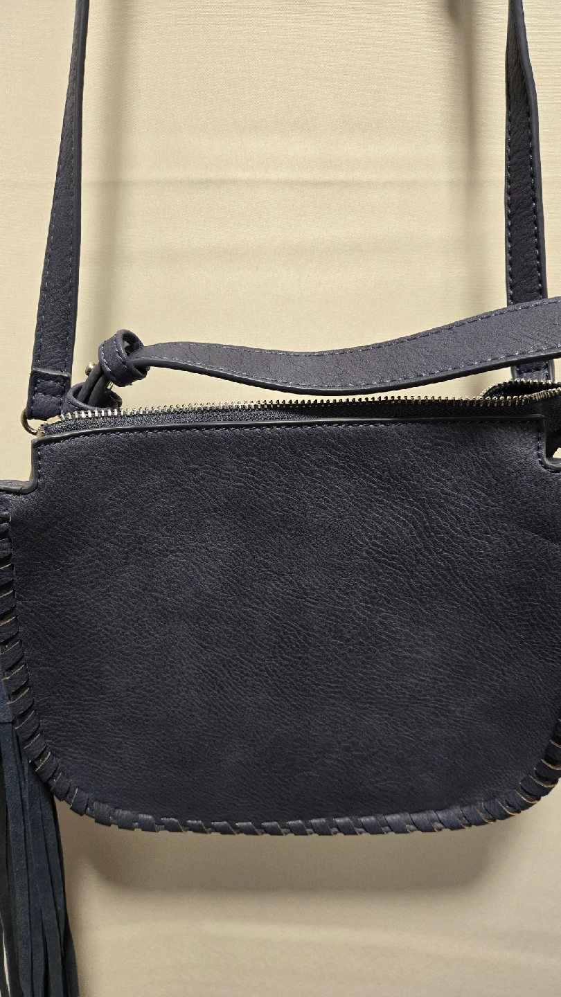 I'm selling a cute navy blue crossbody bag. It's in great condition and has a stylish tassel detail. Perfect for everyday use!