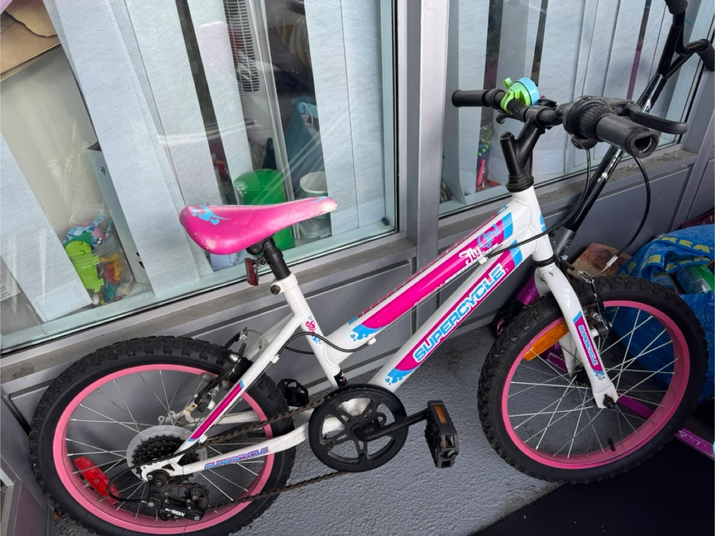 Selling a Supercycle 'Fly' girls bike in white and pink! It's a cute and sturdy bike perfect for young riders. The bike has a comfortable seat and easy-to-grip handlebars for a smooth ride. Ready for a new home!It is good for 4-7 years old .