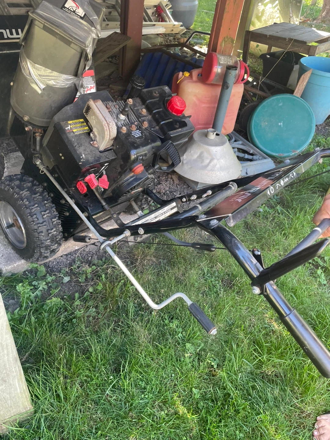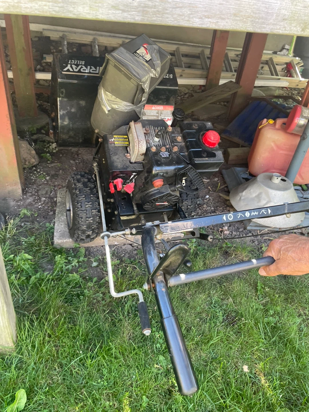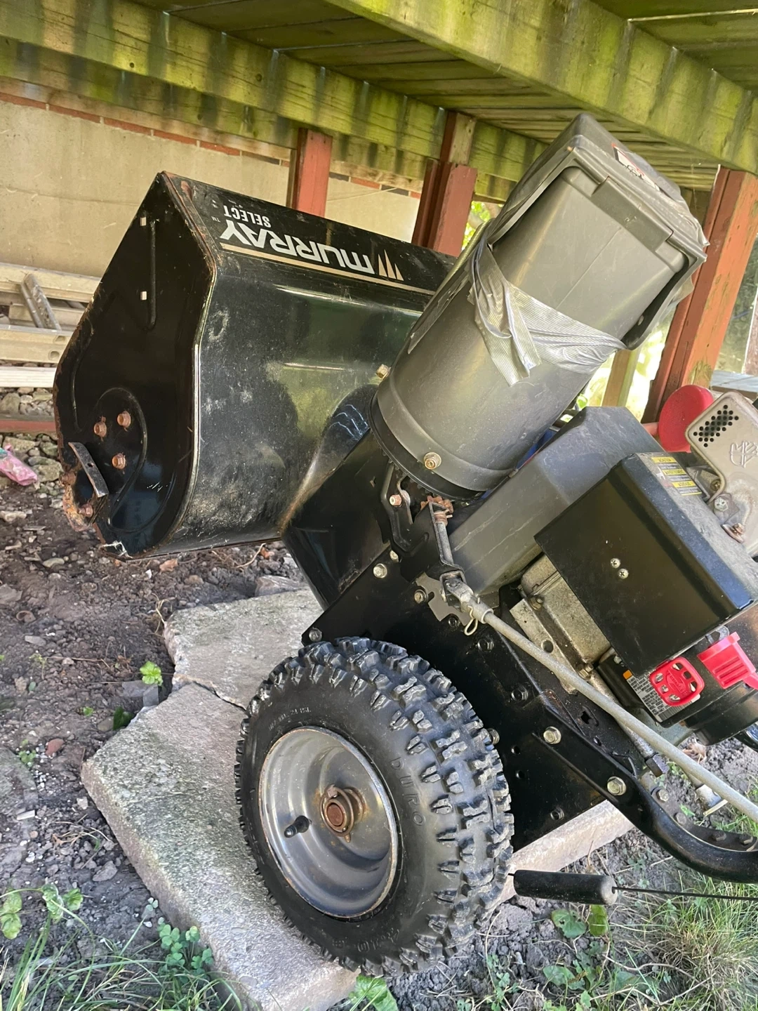 Selling a Murray Select snow blower. It has a Tecumseh engine and a drive control lever for speed adjustment. Perfect for clearing snow this winter! One tire seems to be flat.