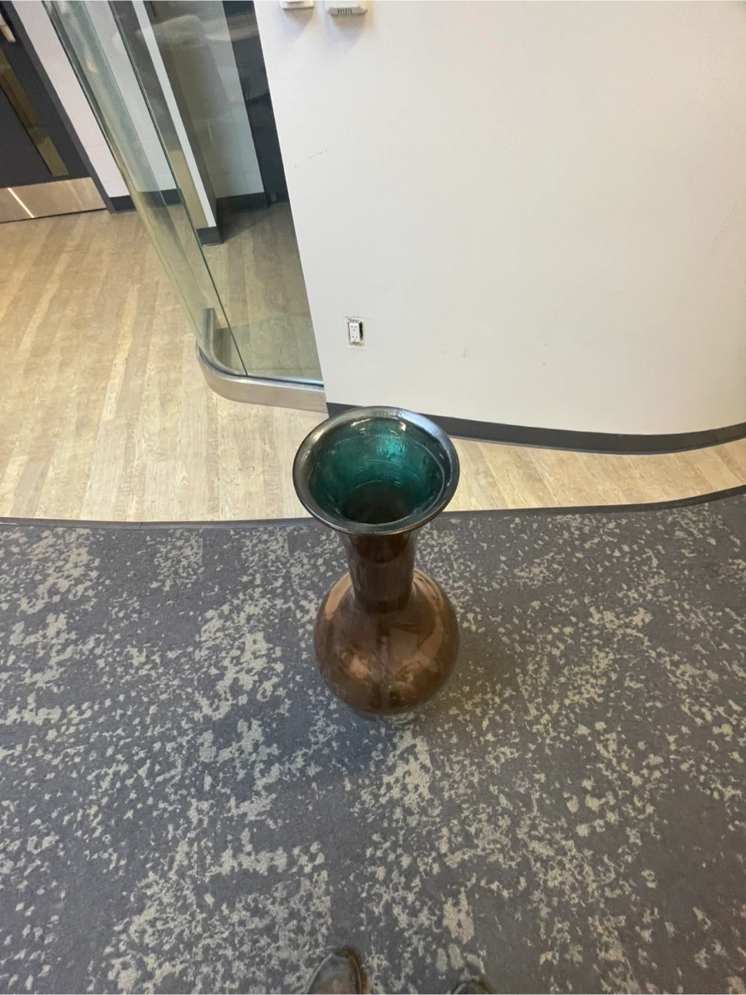 Add a touch of elegance to your home with this decorative brown glass vase! It's in great condition and ready to display your favourite flowers or stand alone as a stylish accent piece
