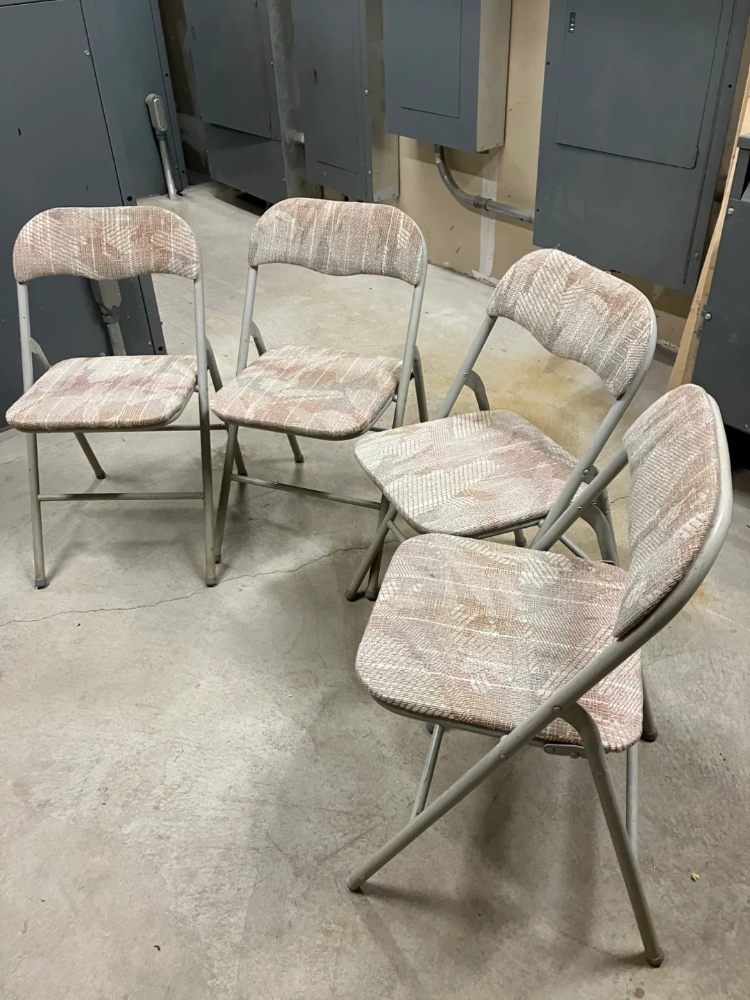 Selling a set of four folding chairs from Seton Hall. These are great for extra seating or events. They have a patterned fabric seat and back with a metal frame. Very comfortable. Cash and pick up only.