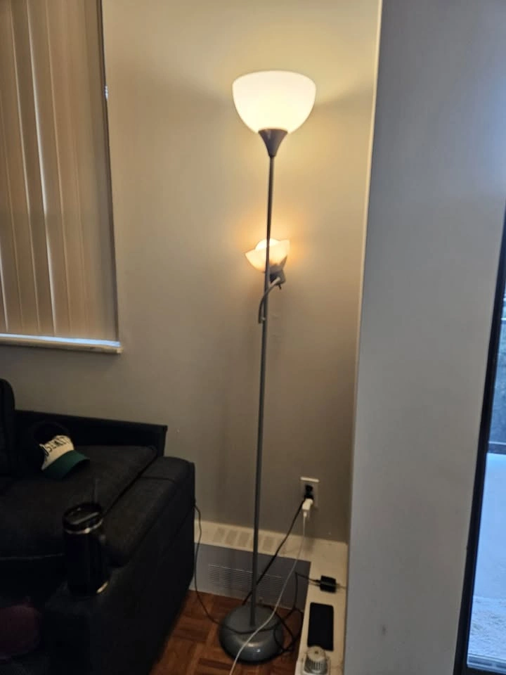 This stylish floor lamp from Walmart is in very new condition and is a great way to update your living space. It's designed to provide both general room light and a focused reading light, making it a versatile addition to any room