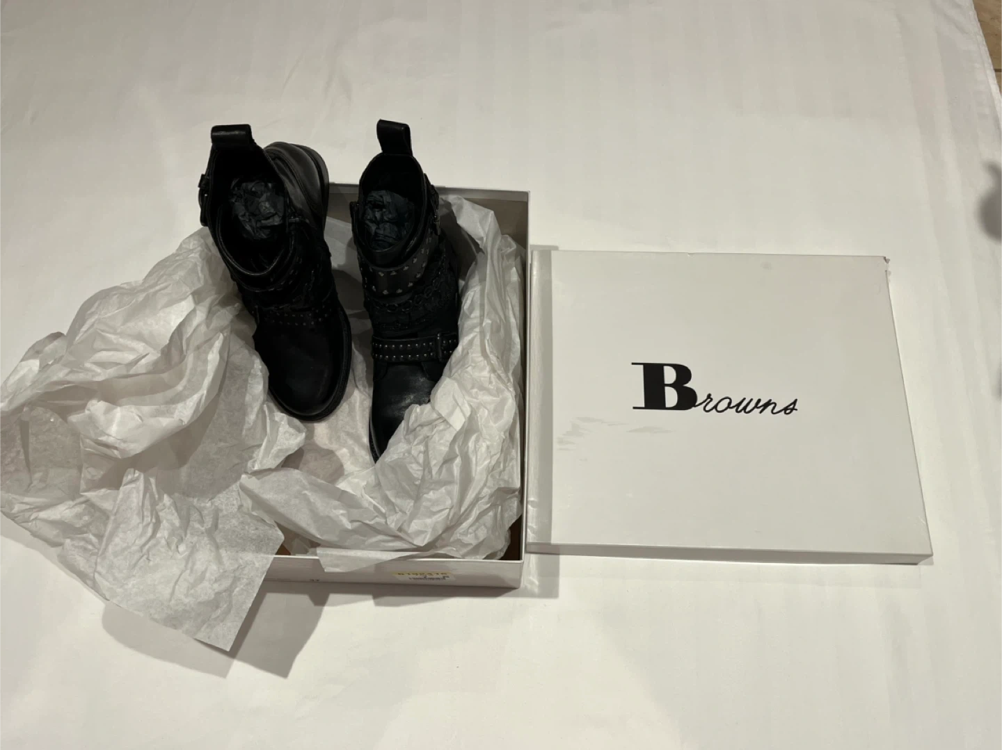 Selling these stylish Brown’s black leather boots with studded detailing! These boots are a size 7 (US). The box has a few marks, boots are in mint condition. These boots originally retailed for $248.