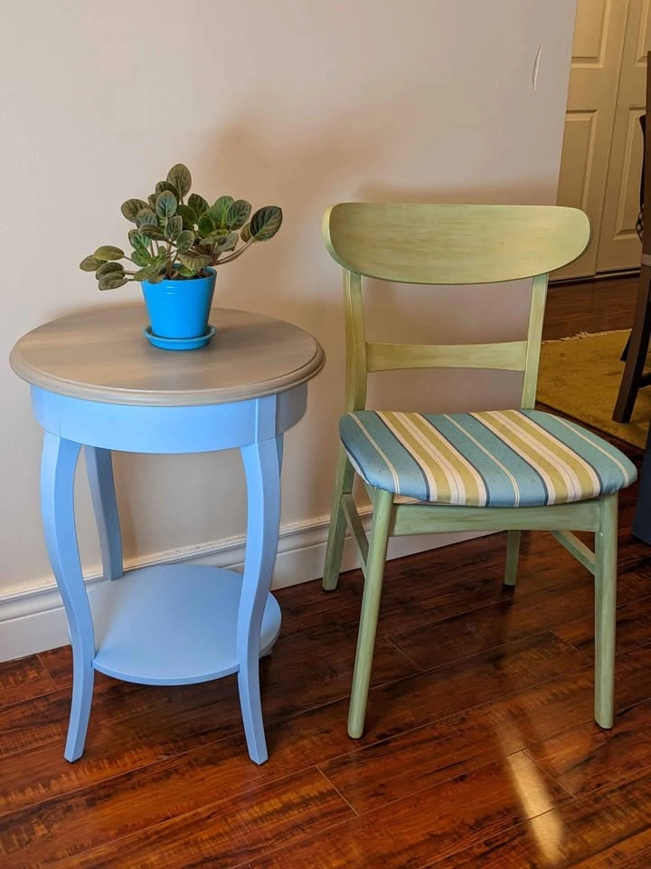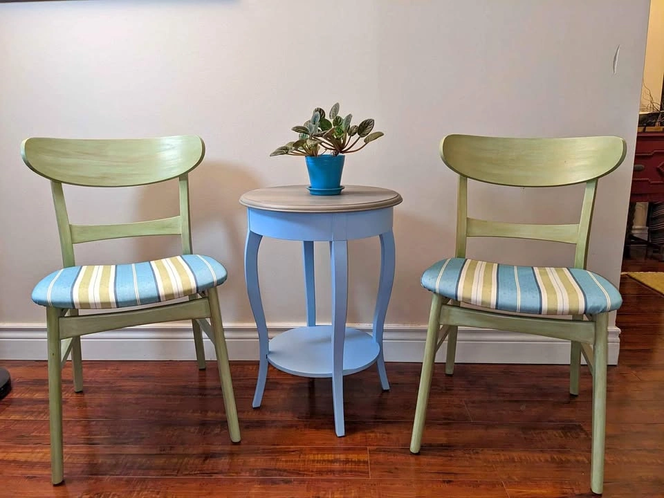 Hand painted small round table. You can match it with these two MCM also hand painted chairs. Price for table only. Price for set is $280