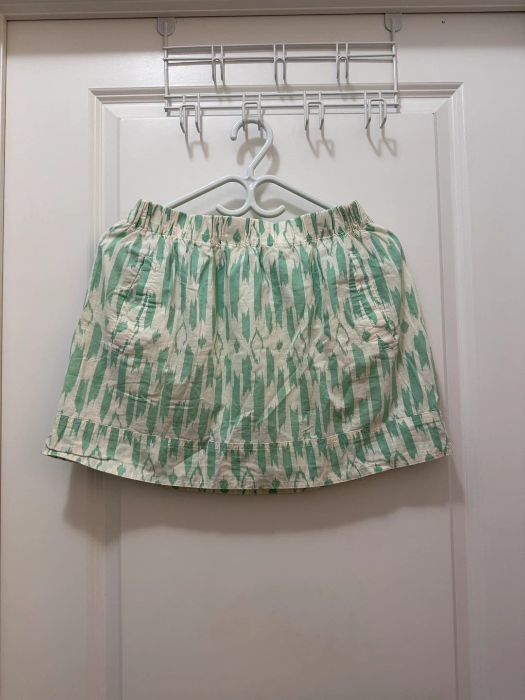 Selling a cute J.Crew skirt in size small! It features a fun green and white pattern and is in great condition. Perfect for adding a pop of colour to your wardrobe!