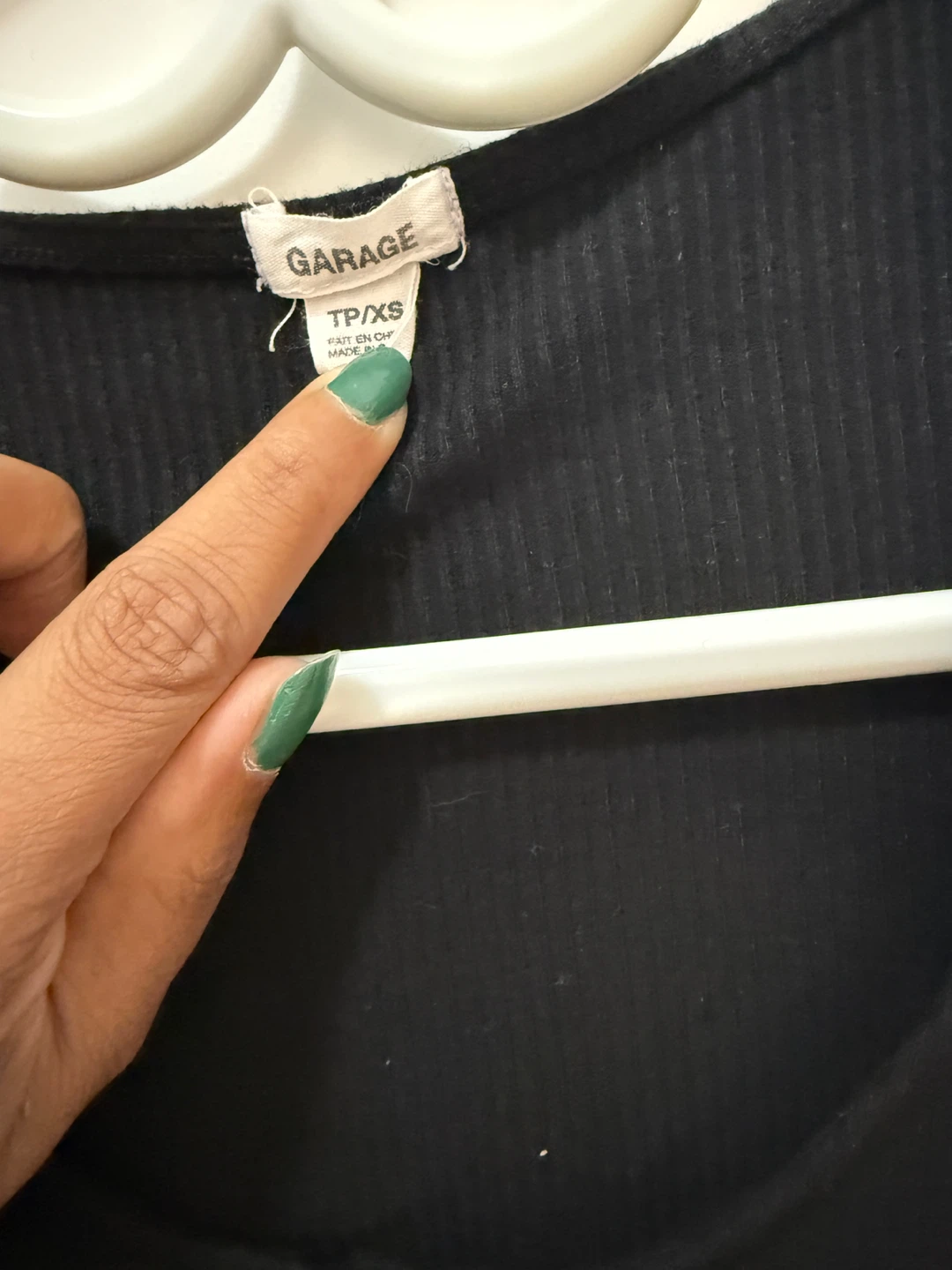 Selling a cute black crop top from Garage. It's in great condition and perfect for summer! The size is XS.