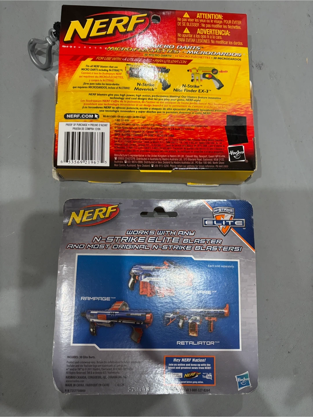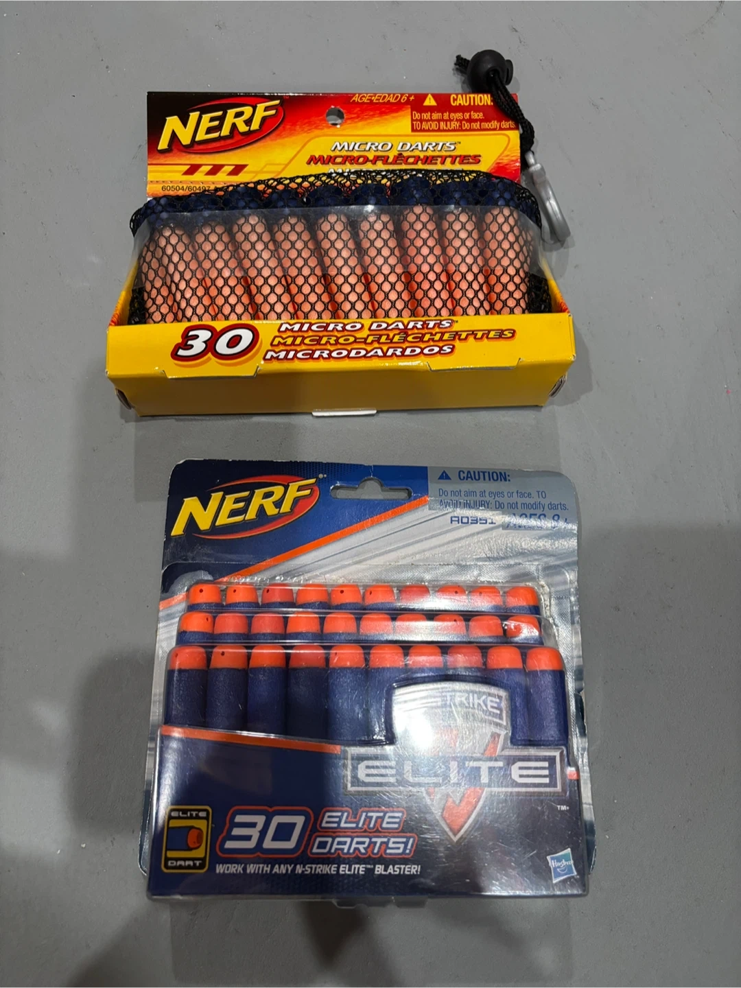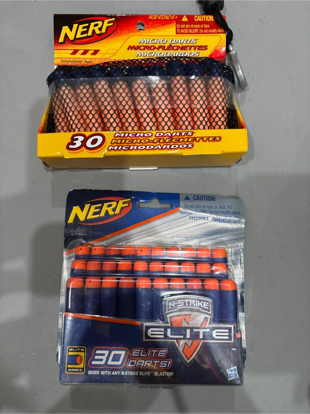 Get ready for some serious dart battles with these packs of Nerf darts! This listing includes one pack of 30 N-Strike Elite darts and one pack of 30 Micro darts. Both packs are new and unopened, ready to be unleashed in your next Nerf war.