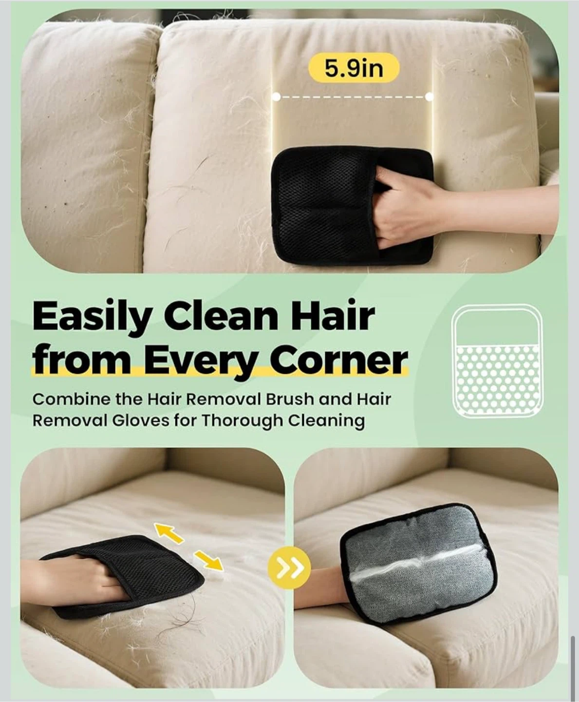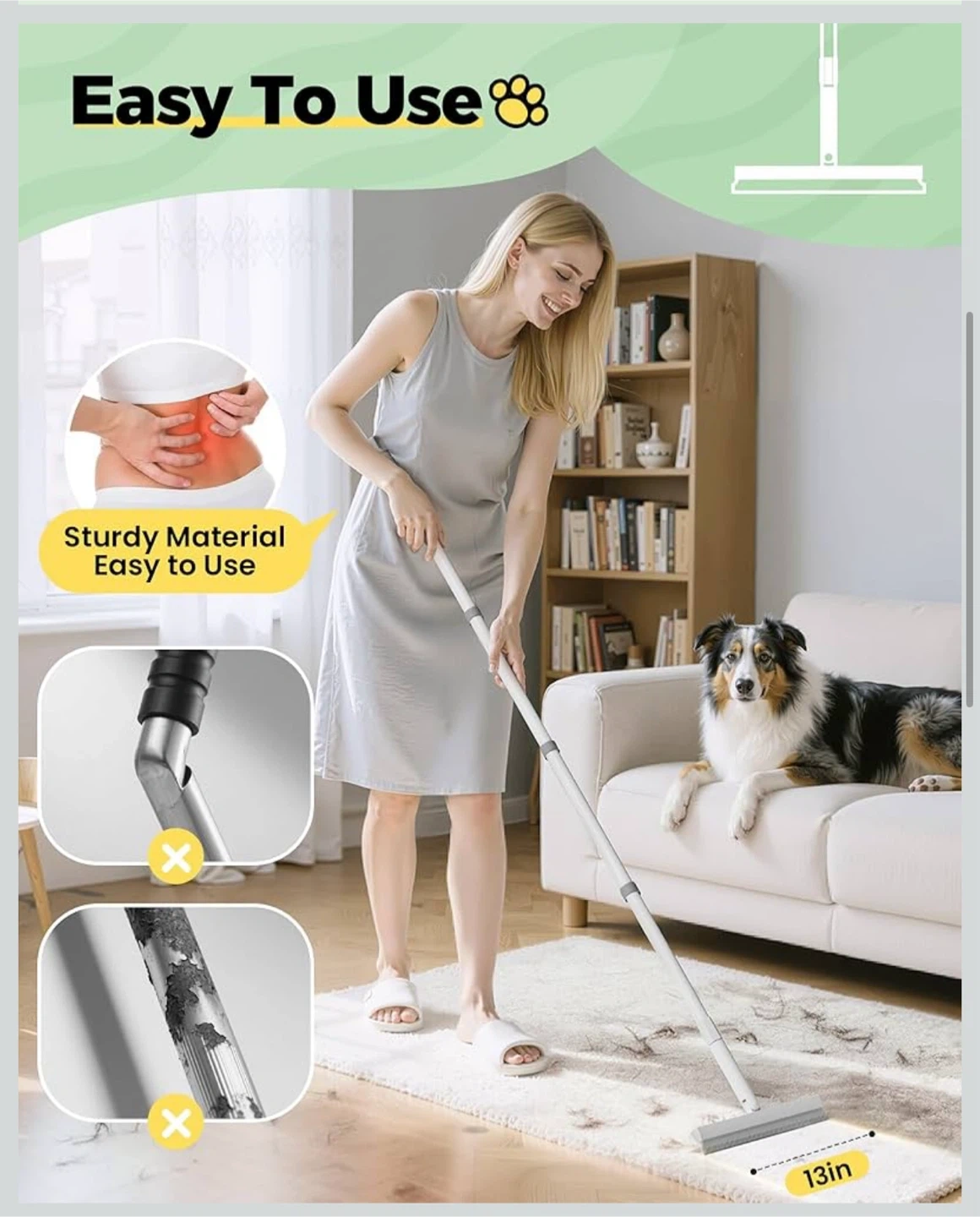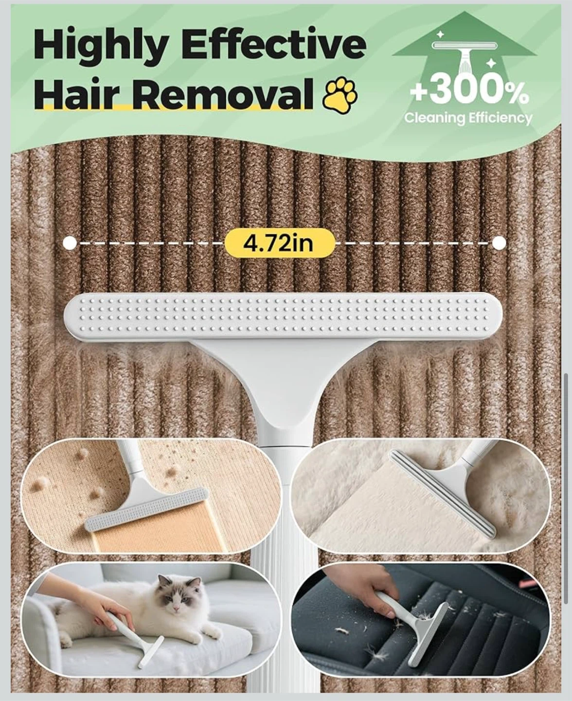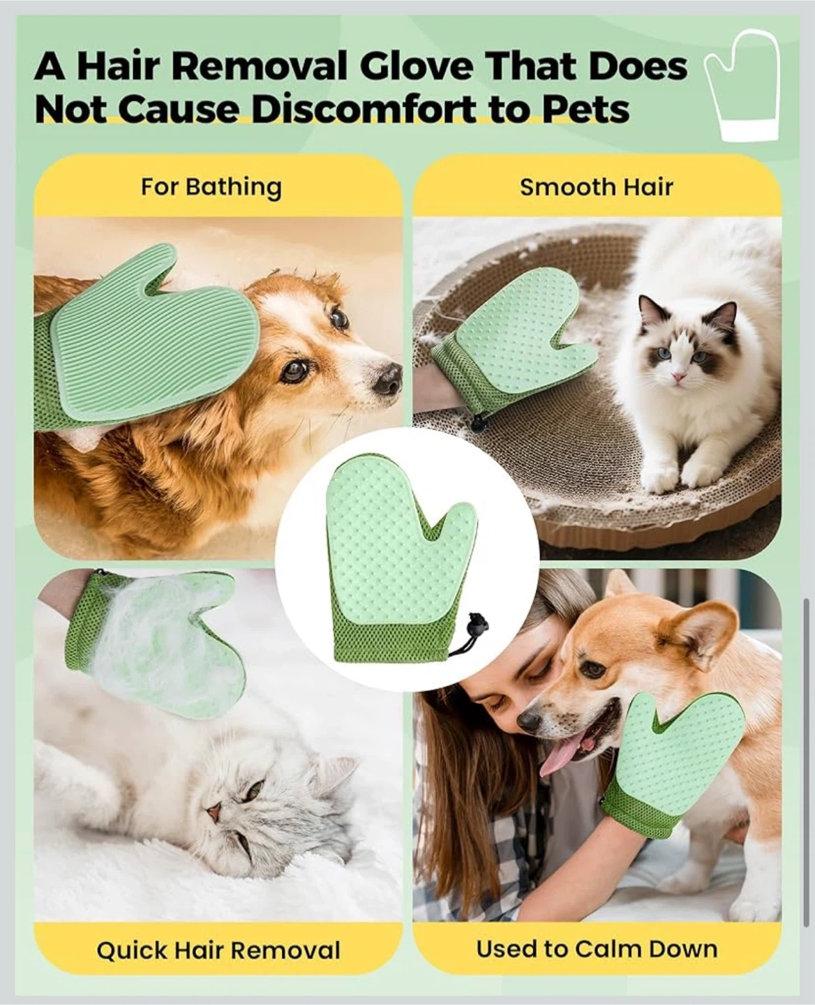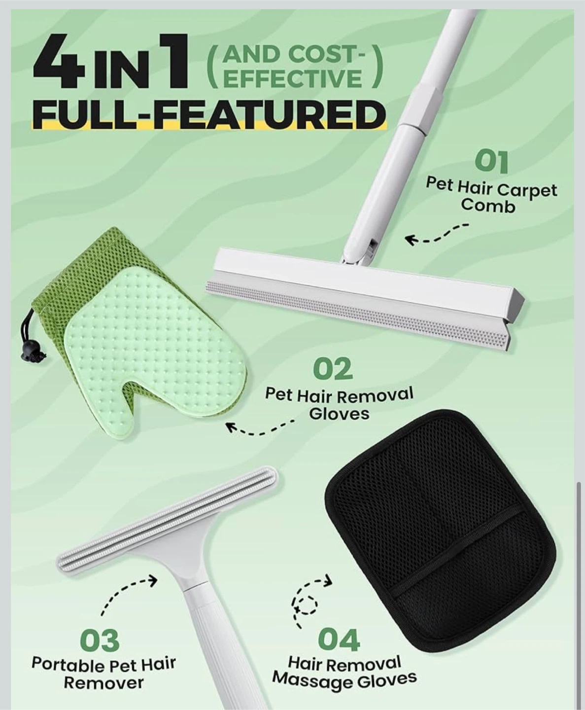 4 in 1 Carpet rake Kit for Pet Hair Removal Tool - Pet Hair Remover broom,59 "Adjustable long handle, Cat Dog Carpet Rake Scraper,Pet Massage Gloves,Hair Remover Electrostatic Gloves,for Rug Mat Couch