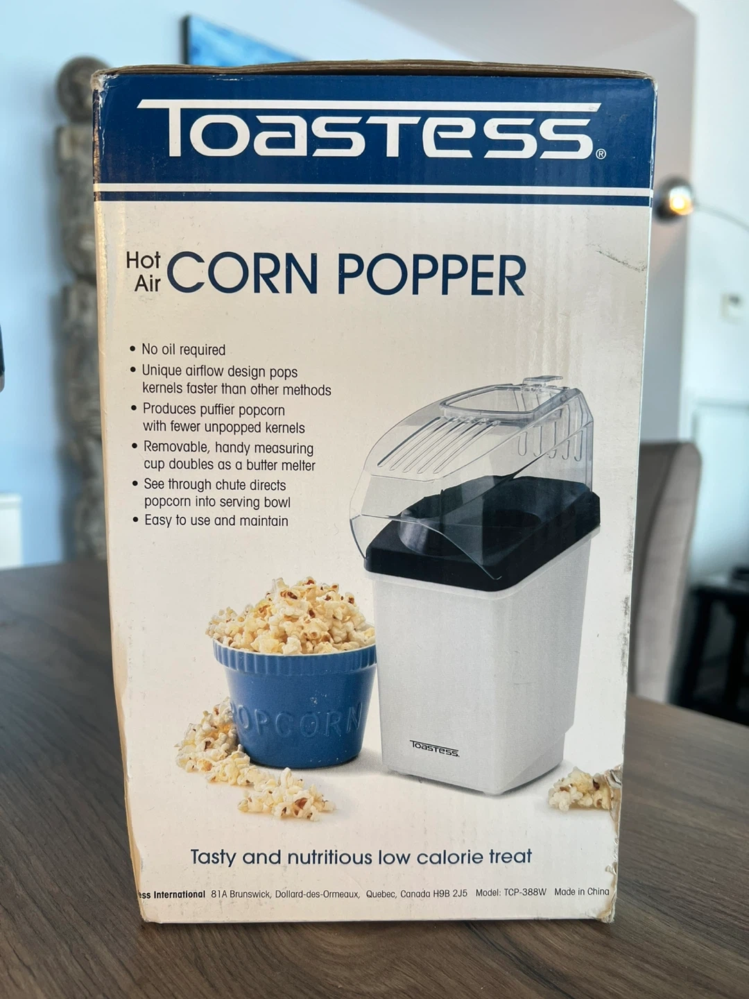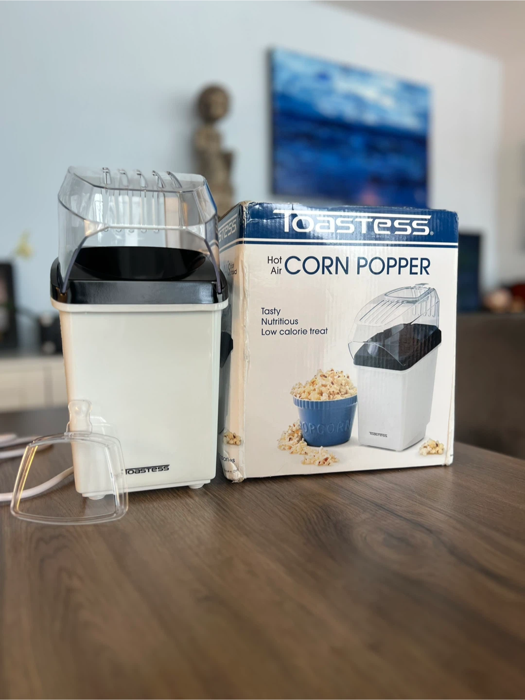 Get ready for movie night with this Toastess Hot Air Corn Popper! It's in great shape and comes with the original box. It's easy to use and maintain, and the handy measuring cup doubles as a butter melter. Enjoy tasty, nutritious, low-calorie popcorn without any oil!