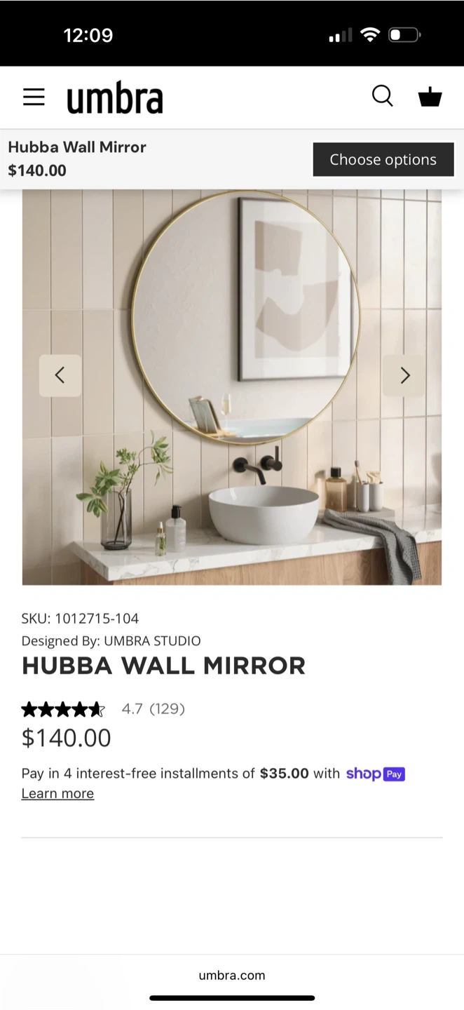 Umbra round wall mirror with a gold frame! It's big and in great condition and ready to add a touch of elegance to your space. Great quality .