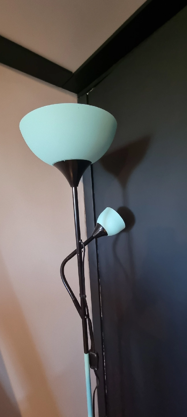 Selling a floor lamp with a mint green shade and a smaller adjustable reading light. It's in great shape and would look lovely in any room!