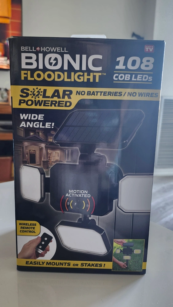 Selling a Bell+Howell Bionic 108 Floodlight. It's solar powered, so no batteries or wires are needed! It features fully adjustable panels and a wide angle. Great for brightening up your pathway or backyard!