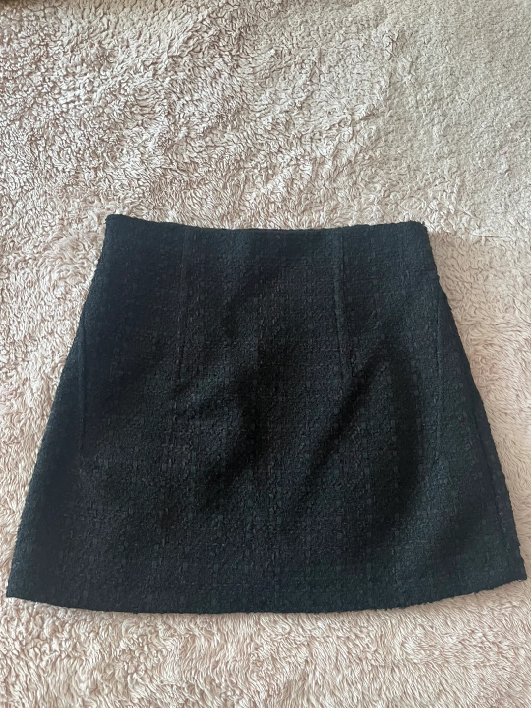 Zara black tweed mini skirt in size S. It's in great condition, never worn. Very short and true to size.