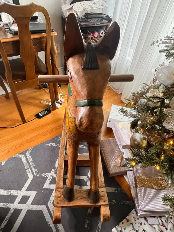 Buy & SellVintage Handcarved Solid Wood Rocking HorseVintage Handcarved Solid Wood Rocking Horse$500Measurements: 40 inches long by 41 inches high to the top of the ears and 12 inches wide. Comes from a smoke and pet free home.WHERE TO MEETCheck LocationView MapSELLERverified606305Brookhaven1114 reviews0 chats·0 favorites·2 views