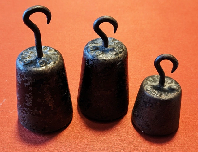 Set of 3 Antique Scale Weights with Hooks