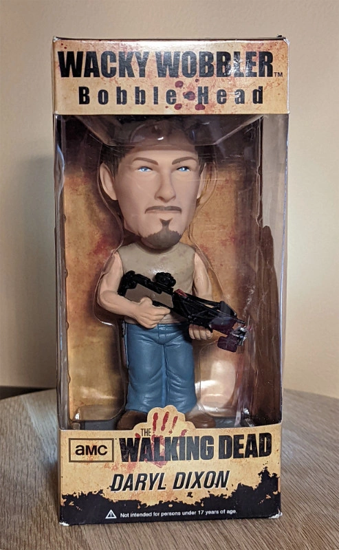 Straight out of AMC's hit TV show The Walking Dead, comes this remarkable The Walking Dead Daryl Dixon Bobble Head. The Wacky Wobbler features Daryl Dixon, as portrayed by actor Norman Reedus, as a detailed bobble head that measures 7-Inch tall. This is a welcome item for any addict of The Walking Dead series.
