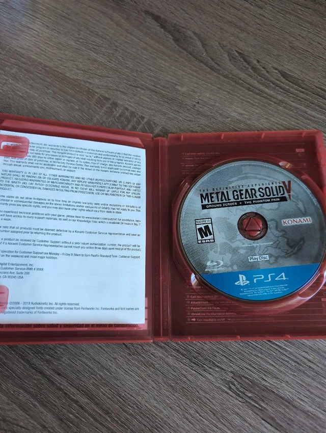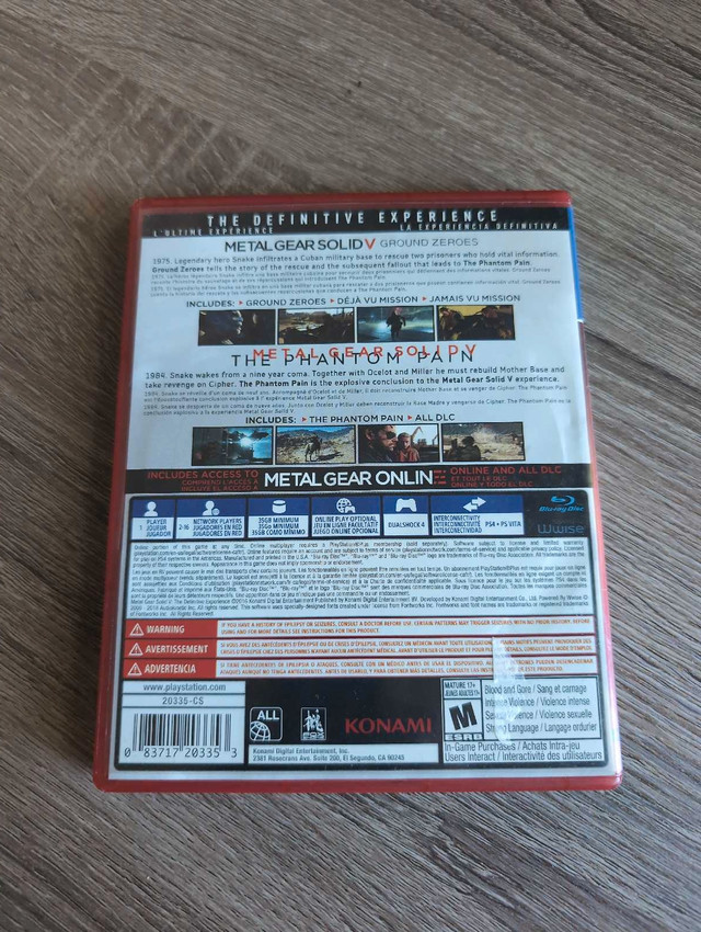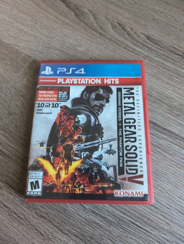 Selling my PS4 copy of Metal Gear Solid V: The Definitive Experience, which includes Ground Zeroes and The Phantom Pain! The disc and case are in good condition. Perfect for fans of the series or newcomers looking for an immersive gaming experience. This game delivers hours of stealth action and compelling storytelling. It's a pre-owned copy. If the ad is up, then yes, it's still available! So you can message me to arrange a time to meet up, and we can make this treasure yours!
