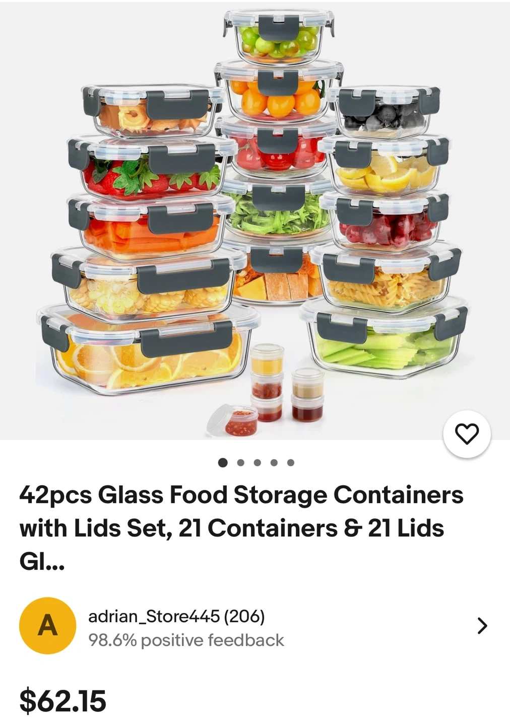 42pcs- Leakproof Glass Food Storage Containers Set (orig. 62)