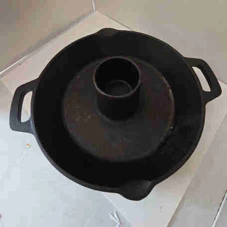 Click on the photo to get a better image. This is a used Emeril cast iron chicken roaster that's ready to help you cook the perfect, succulent chicken. It's designed for even heat distribution, ensuring your poultry is cooked to perfection every time. Being cast iron, it has some weight to it and is durable. Key Features: * Brand: Emeril * Material: Cast Iron * Design: Even heat distribution * Condition: Used, but well-maintained Chicken Roasting Pan is 11''. Total length(with handle):13.5". The height of the chicken holder is: 4". Pan depth is 2". Made of sturdy cast iron Unleash your inner chef with this Emeril cast iron chicken roaster! If the ad is up, it's available, ready to wing its way to your kitchen!