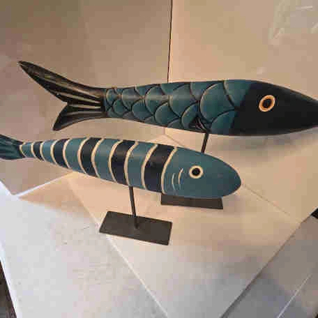 Click on photos to get a better view. Add a nautical touch to your space with these charming, used, decorative wooden fish. They're perfect for adding a touch of the sea to any room. Specifications: - Material: Wood - Style: Nautical, Decorative - Condition: Used - 17 x 9 inches for large fish - 13 x 7 for smaller fish - 1 lb 9 oz These decorative fish are looking for a new home where they can be admired and cherished. They bring a unique, handcrafted feel to any room, reminding you of lazy days by the sea. $12.20 for 2 or $9 each. If the ad's still up, it's still available!