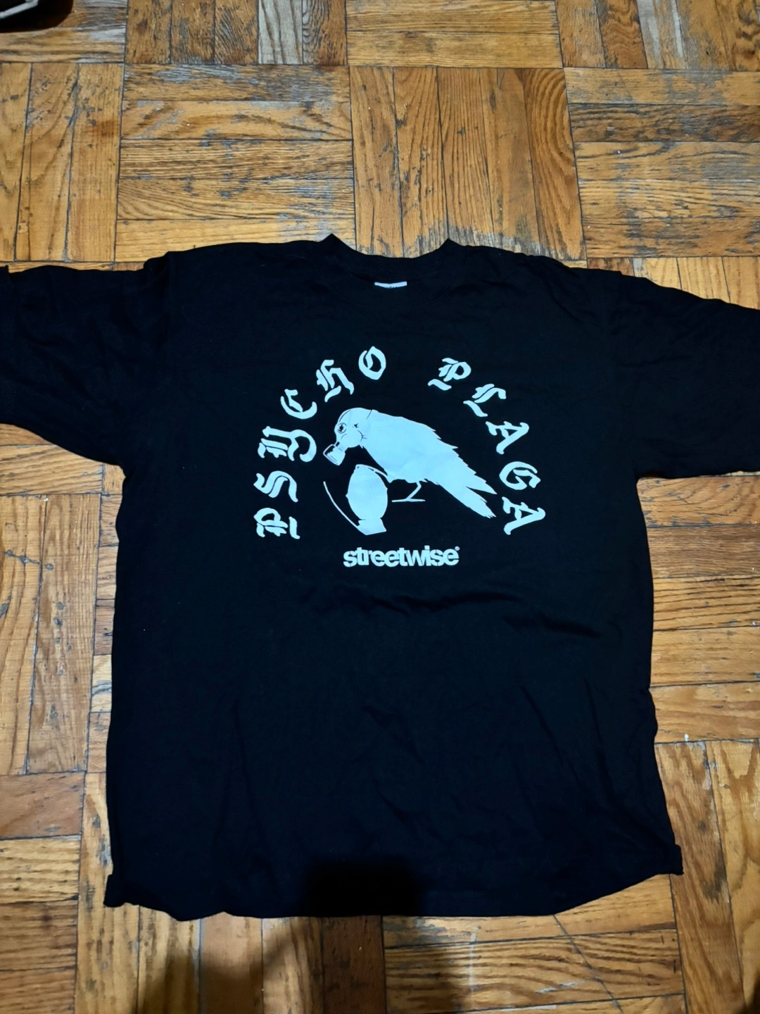 Selling a black Streetwise t-shirt featuring the Echo Plaga design. It has a cool graphic on the front. The shirt is in good condition and ready for a new home!