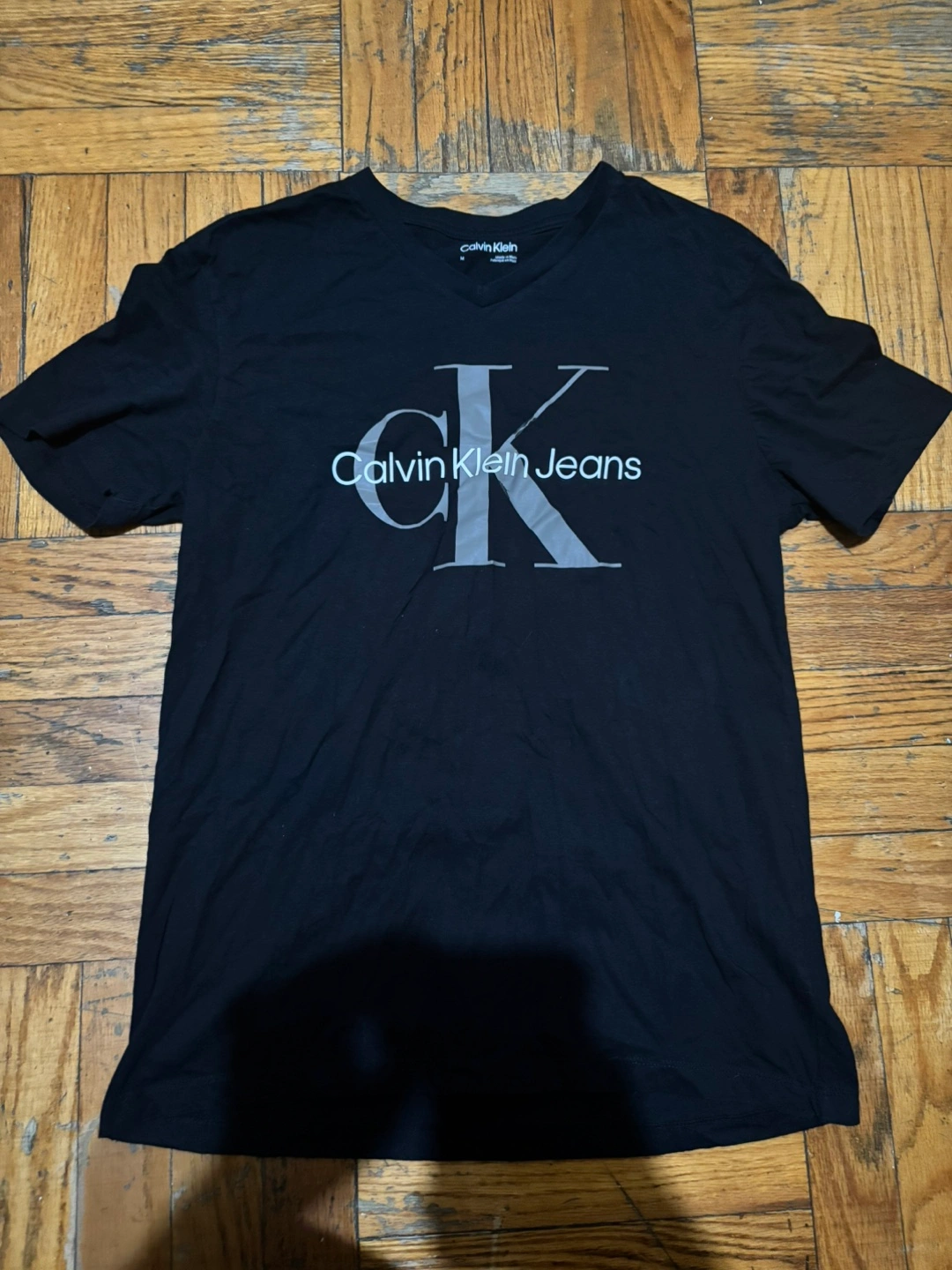 Selling a Calvin Klein Jeans black T-shirt in size M. It's in good condition and ready for a new home!