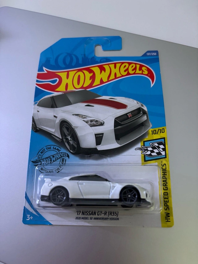 28This is a '17 Nissan GT-R (R35) Hot Wheels car, a 2020 model celebrating the 50th Anniversary. It is new, still sealed in its original packaging, making it a great addition to any Hot Wheels collection or a fun toy for car enthusiasts. * Series: HW Speed Graphics * Model: '17 Nissan GT-R (R35) * Year: 2020 * Condition: New I've priced this one at the higher end due to it being in pristine condition. If the ad is up, it's still available – no need to ask, just zoom on over!