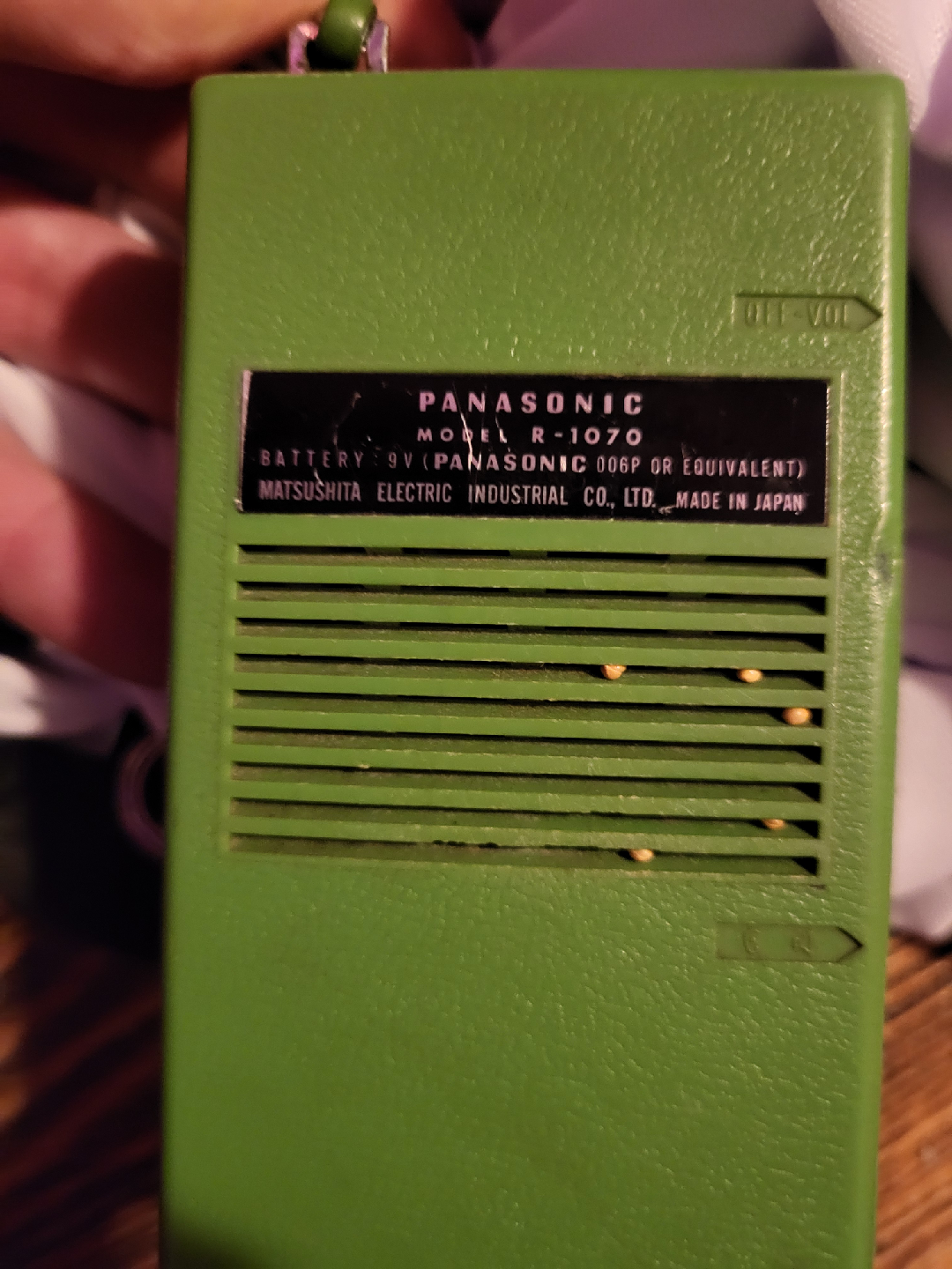 Selling a vintage Panasonic R-1070 radio! It's a cool little piece of history. It requires a 9V battery (Panasonic 006P or equivalent). Made in Japan by Matsushita Electric Industrial Co