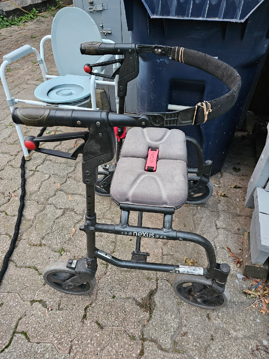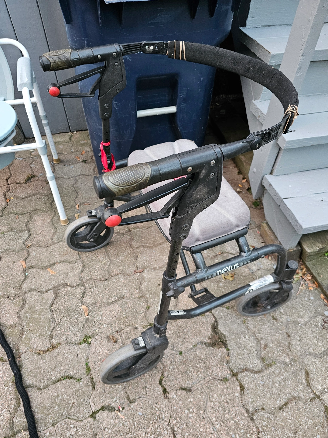 Selling a Nexus 4 rollator walker. It has a seat for resting and is great for anyone needing a little extra support while walking. It's in used condition but still has plenty of life left!