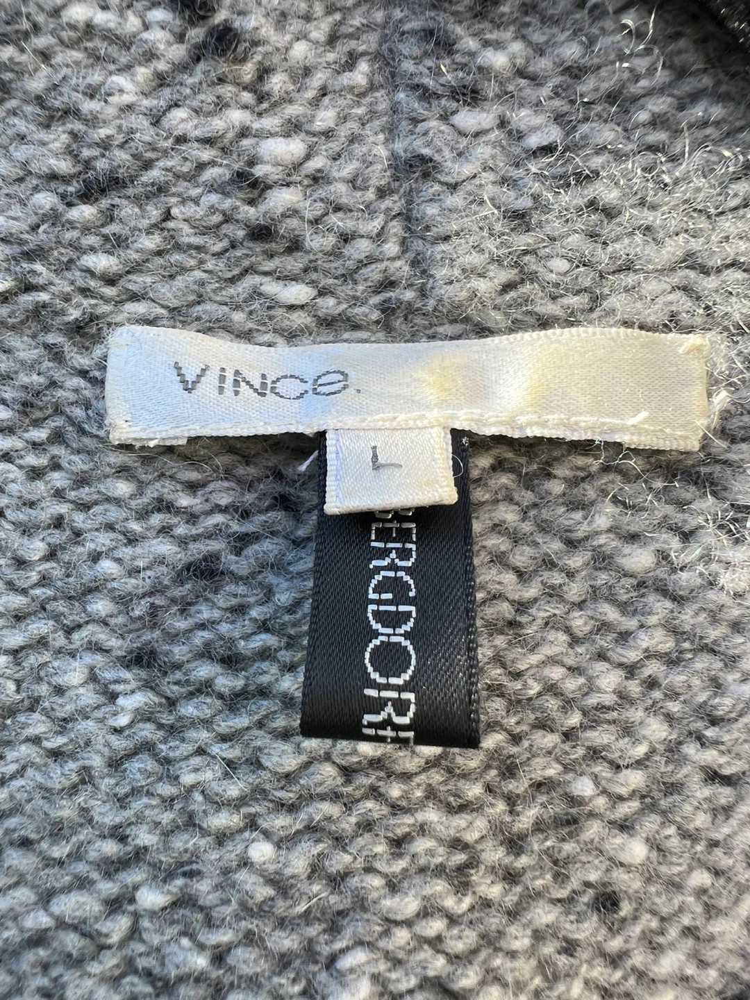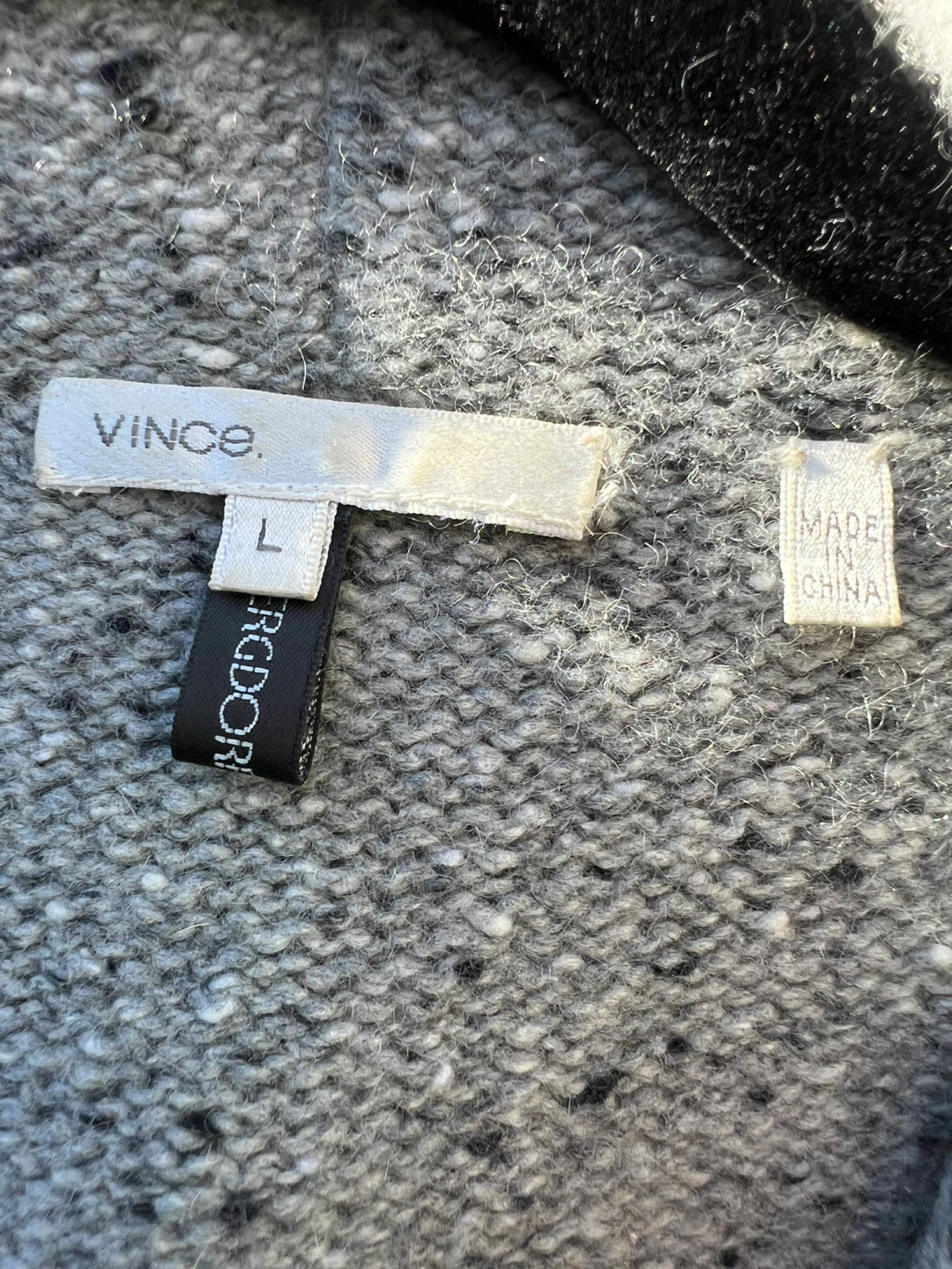 Selling a gently used Vince Bergdorf Goodman hooded cardigan in size L. It's a cozy and stylish piece, perfect for layering. The cardigan is made in China and has a lovely, relaxed fit. Great for adding a touch of casual elegance to any outfit!