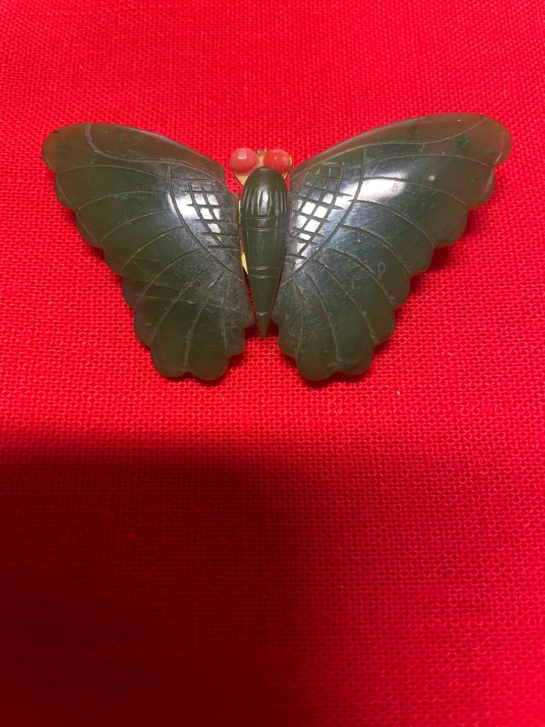 Selling a beautiful butterfly brooch pin! It appears to be made of jade, with a gold-tone backing and pin. A lovely accessory to add a touch of nature-inspired elegance to any outfit