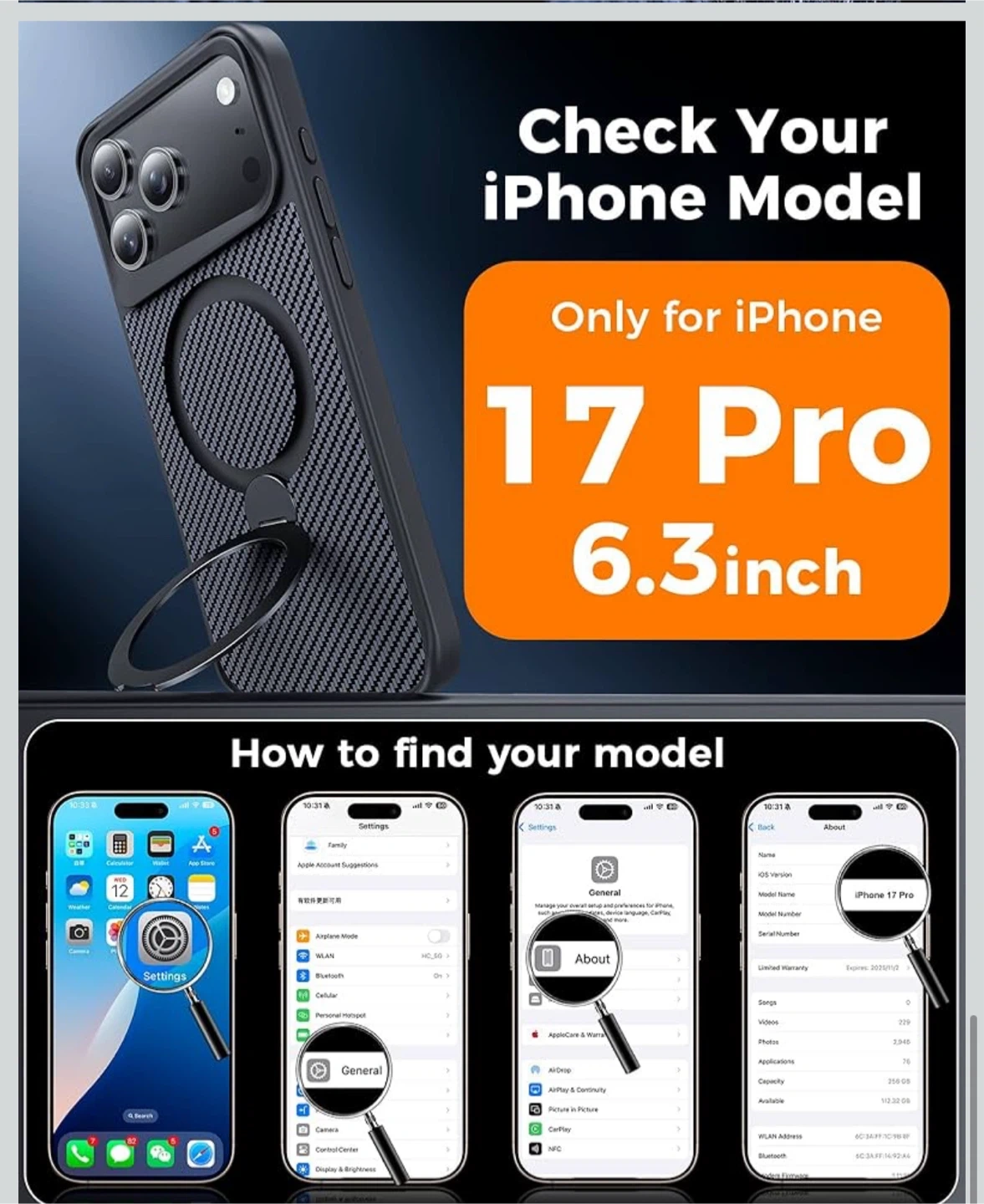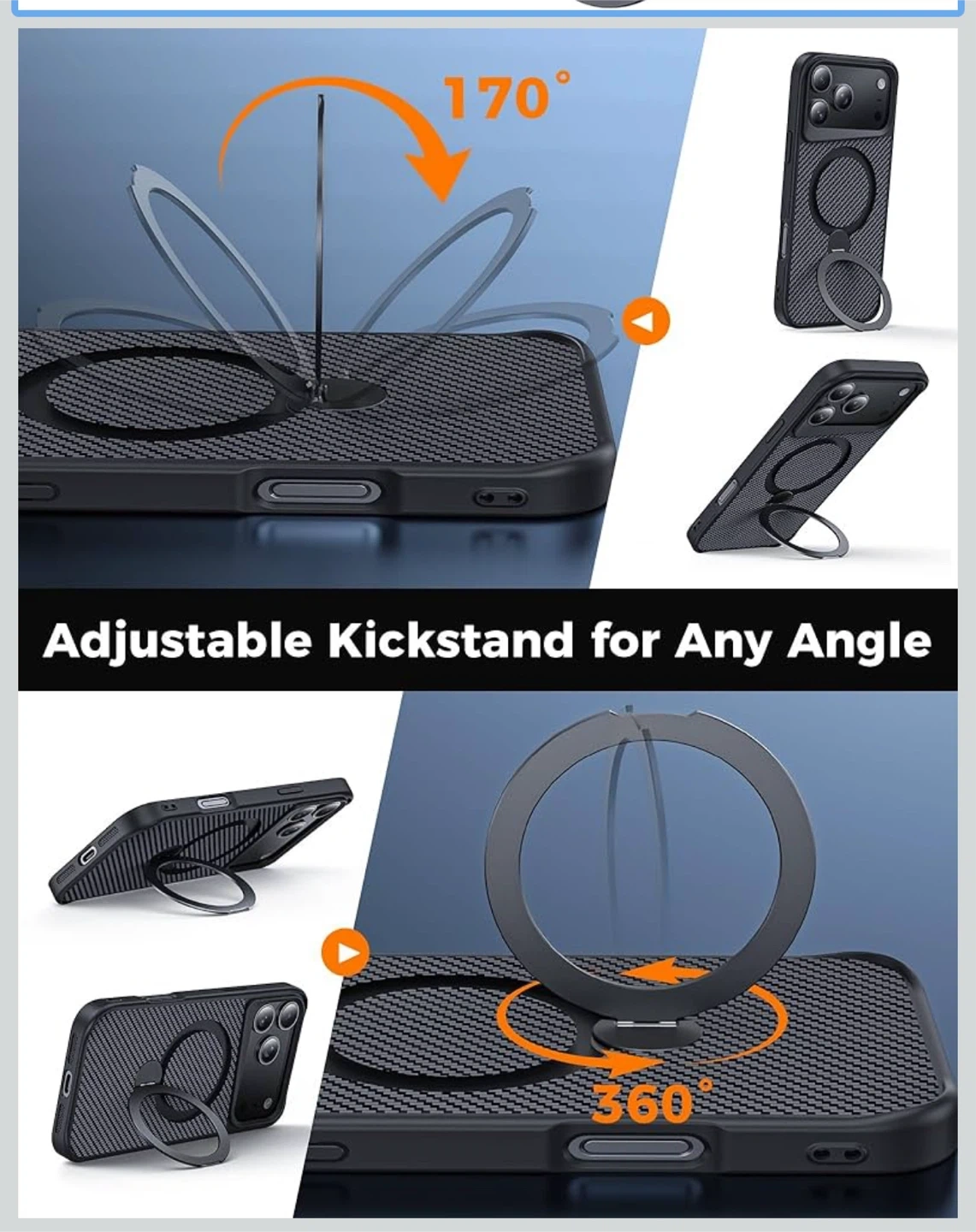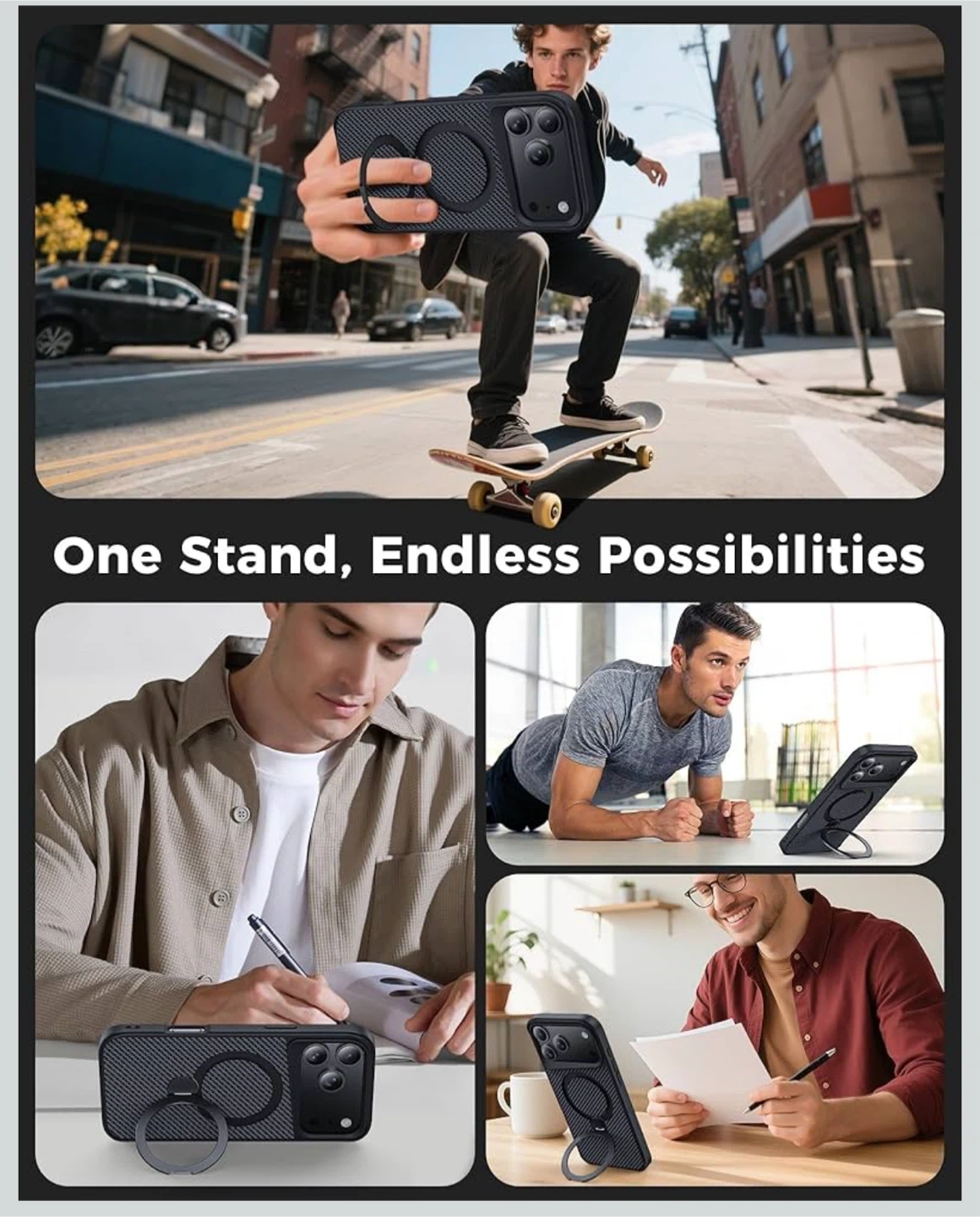 for iPhone 17 Pro Case with 360° Magnetic Stand, with Stand Ring 6.3'', Black