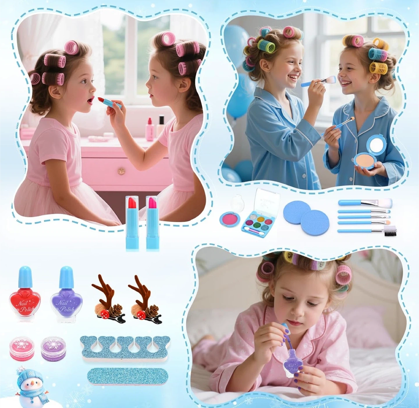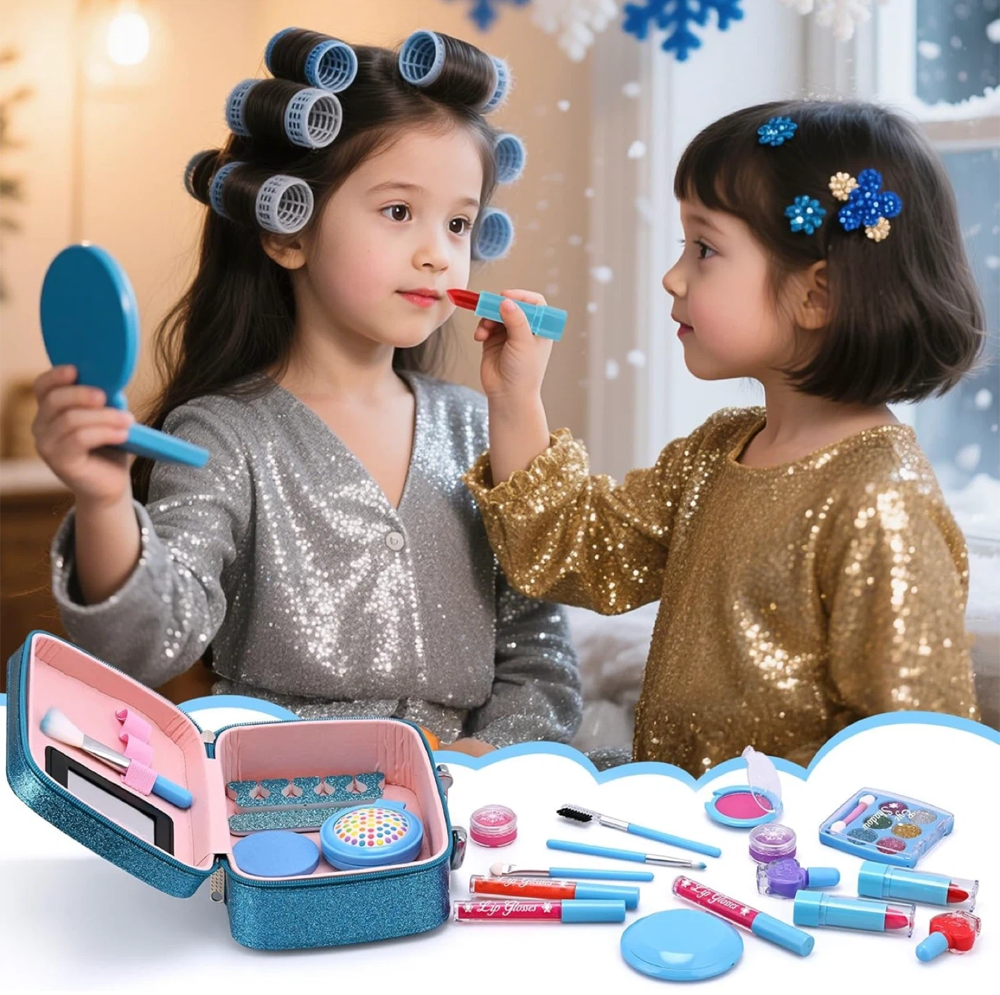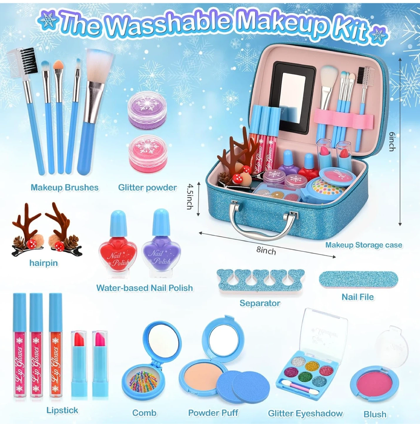 Real Washable Makeup Kit for Girls - Non-Toxic Kids Play Make Up Set Toy for Toddlers Children