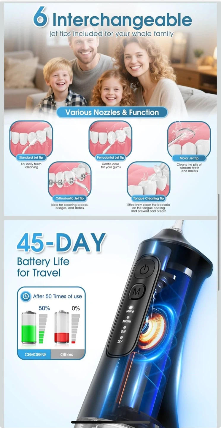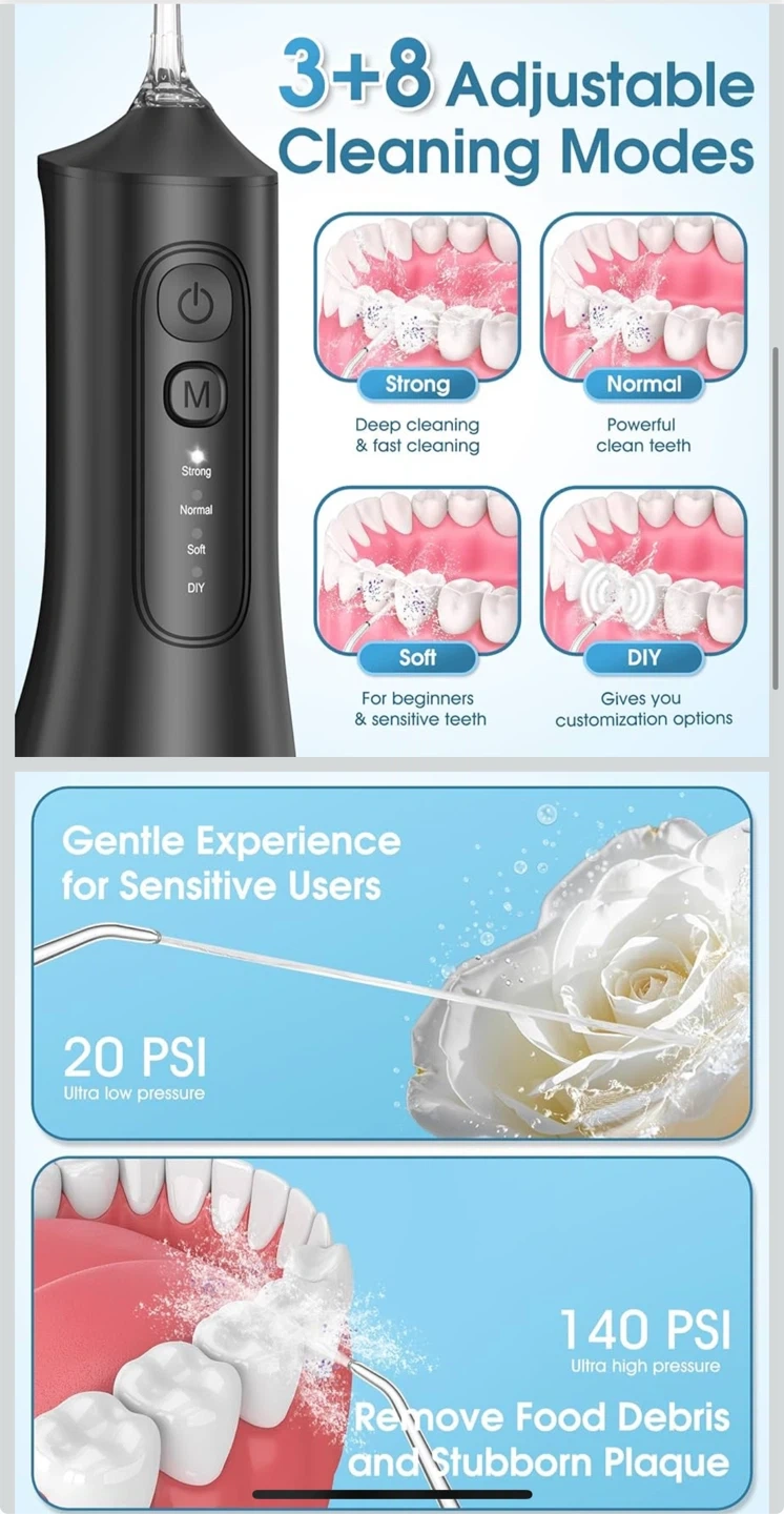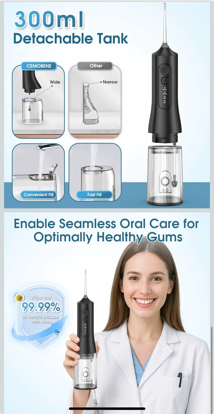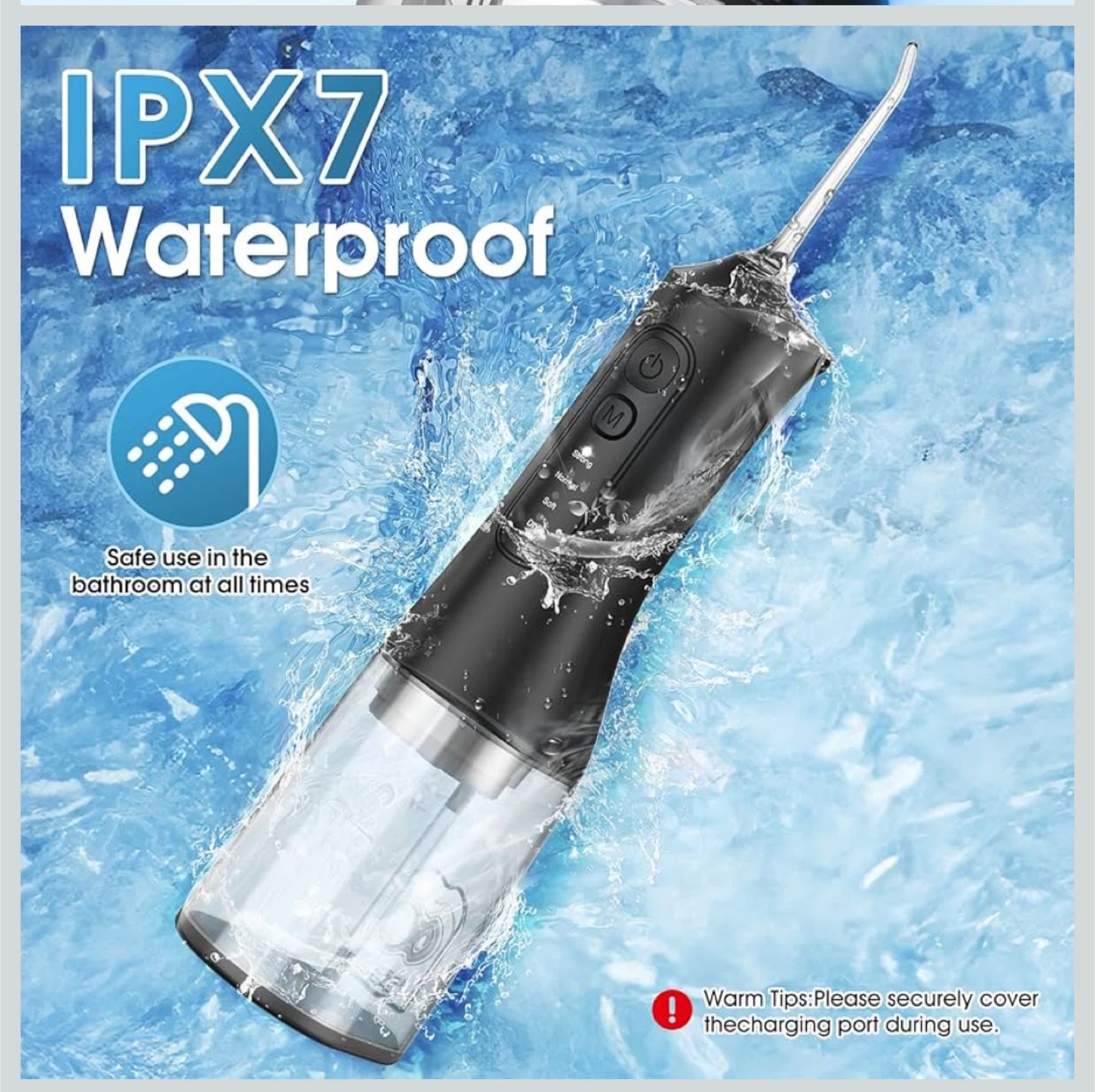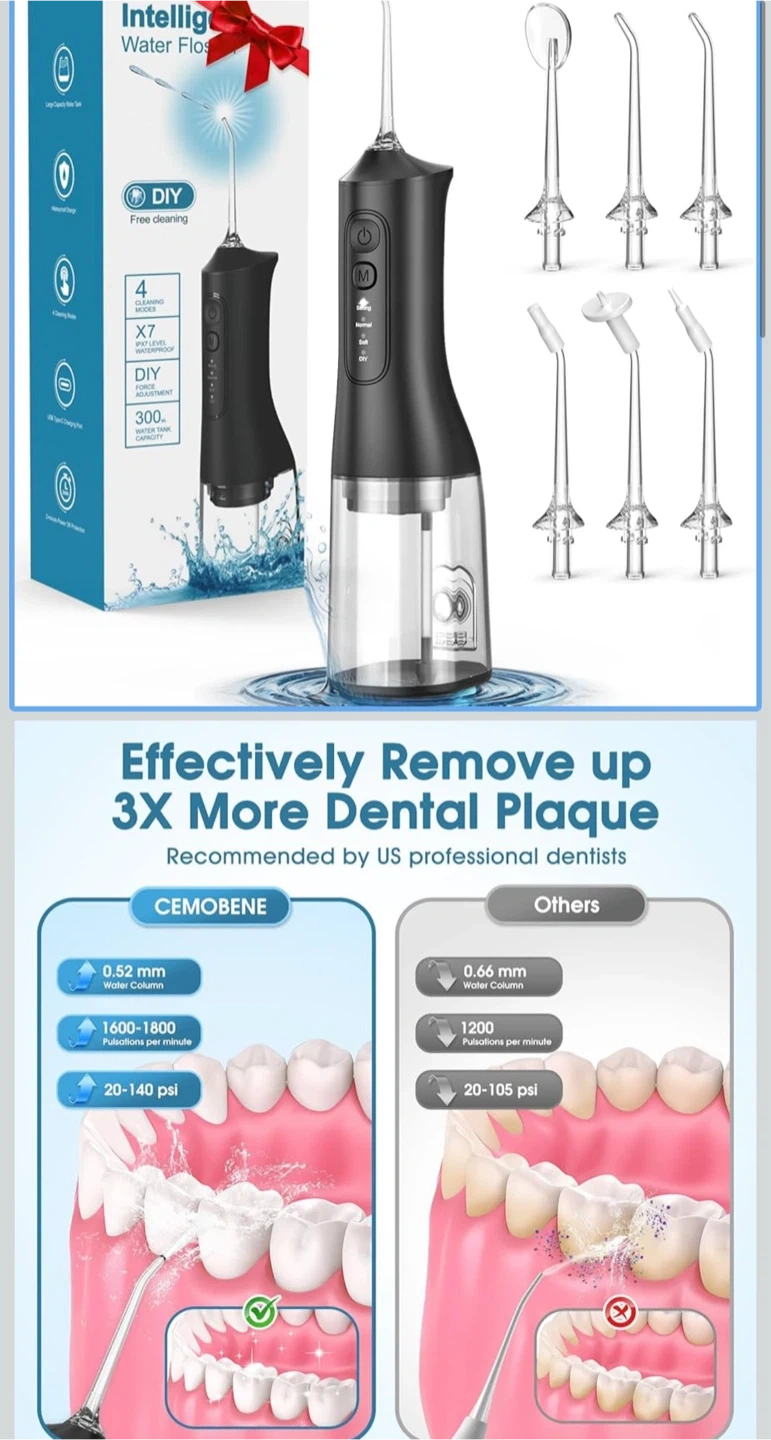 Water Flosser, Rechargeable 300ML IPX7 Waterproof Cordless Portable Oral Irrigator with 4 Modes & 6 Replaceable Jet Tips-Professional Flossing Cleaner for Daily Home Use,Travel,Gums,Braces Care-Black