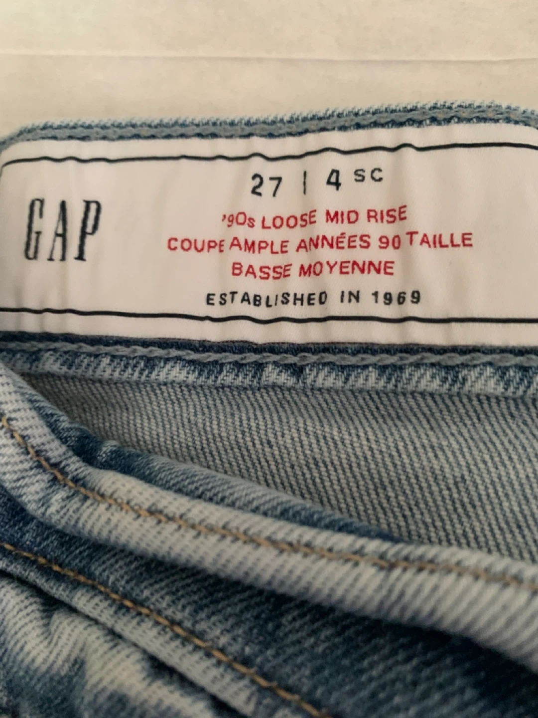 Selling a pair of Gap '90s Loose Mid Rise jeans in a size 27. These are a light wash denim with a comfortable, relaxed fit. Perfect for a casual, everyday look!
