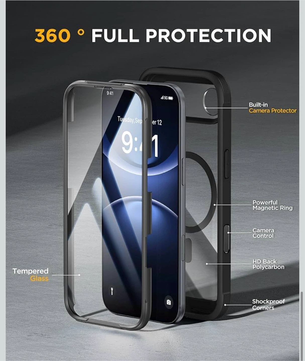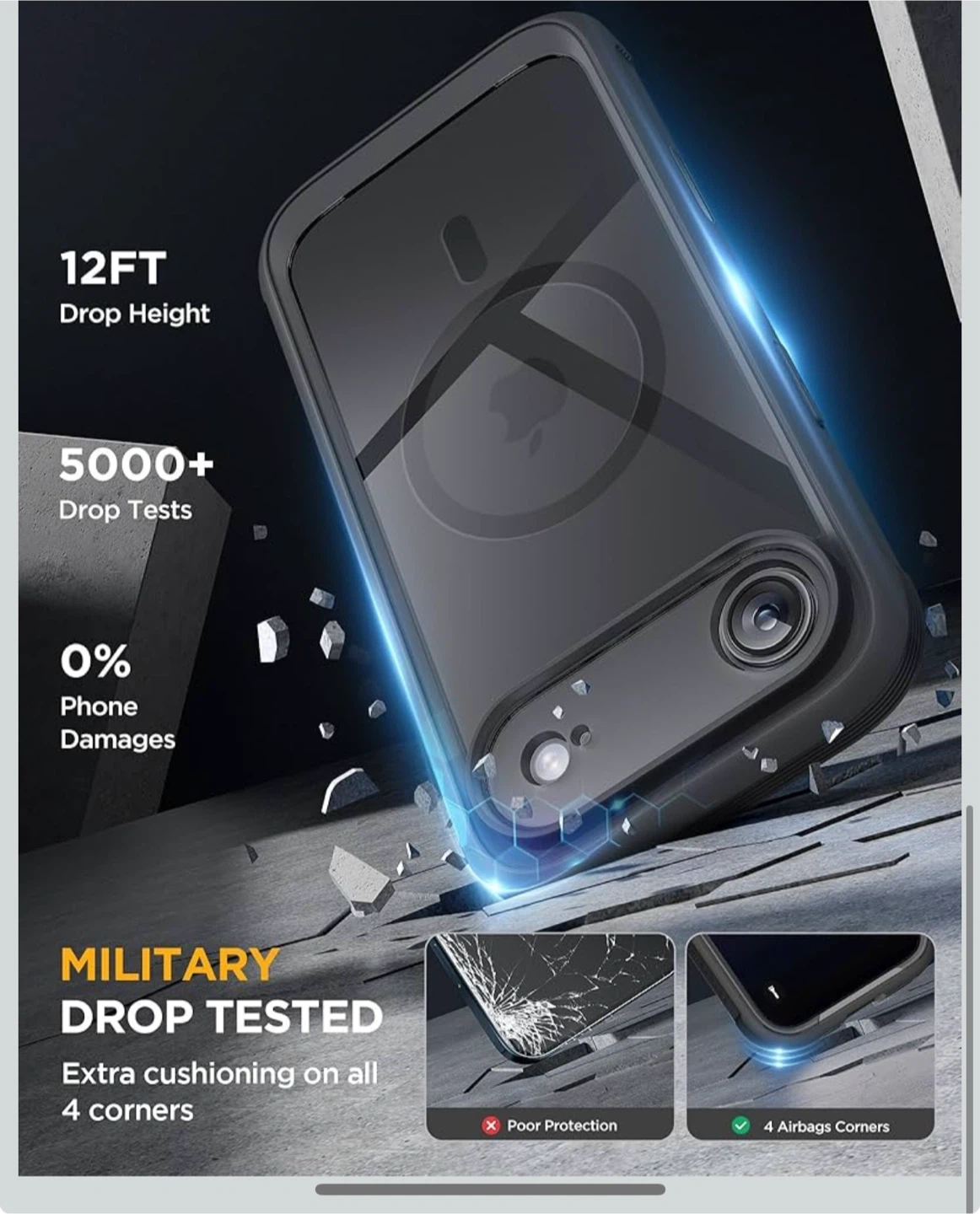 Magnetic for iPhone Air Case 6.5" [Compatible with MagSafe] Full-Body Phone Case with Built-in Glass Screen Protector & Camera Control