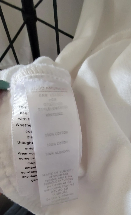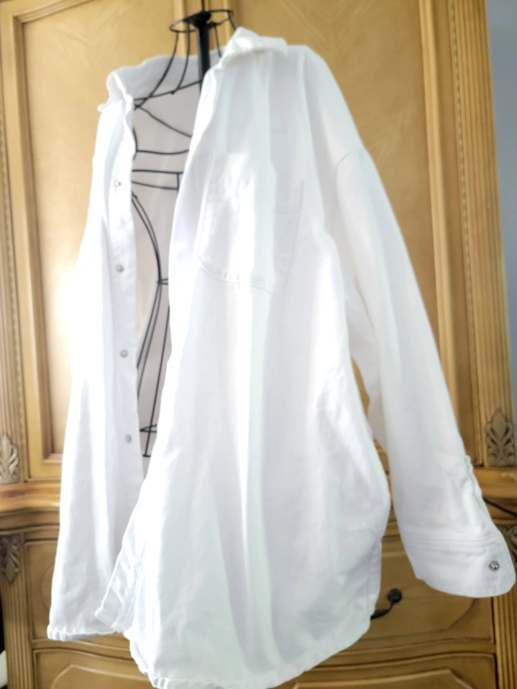 Selling a Good American white denim shacket in size 3/4. It's made of 100% cotton and is in great condition. Perfect for layering or wearing on its own!