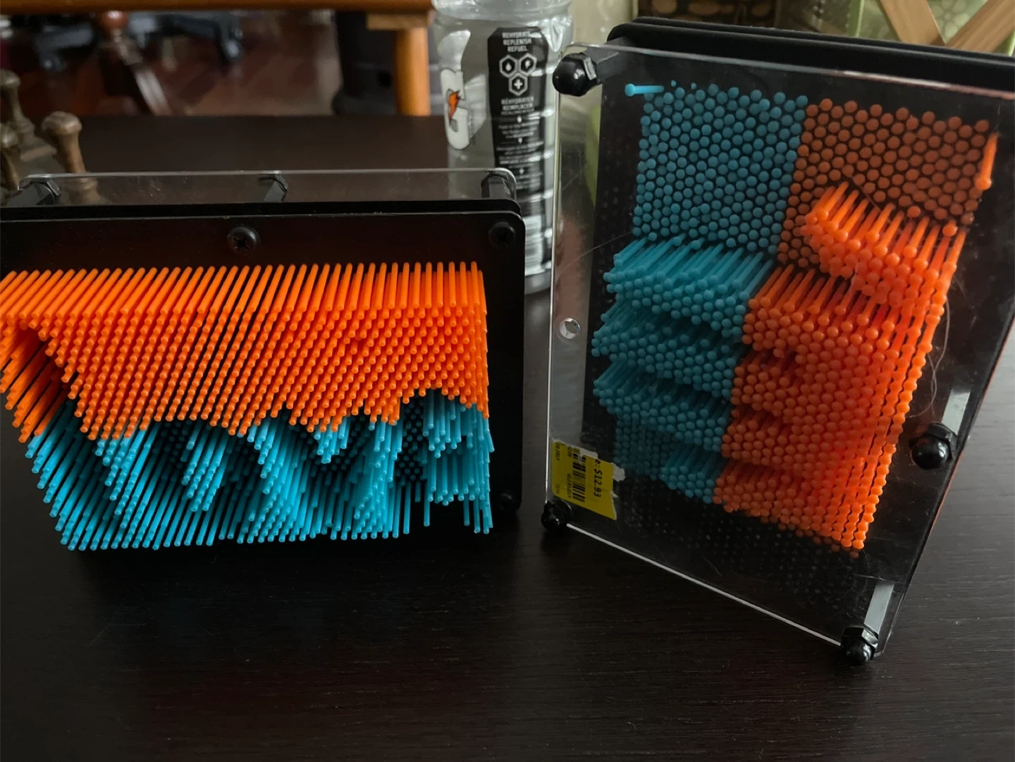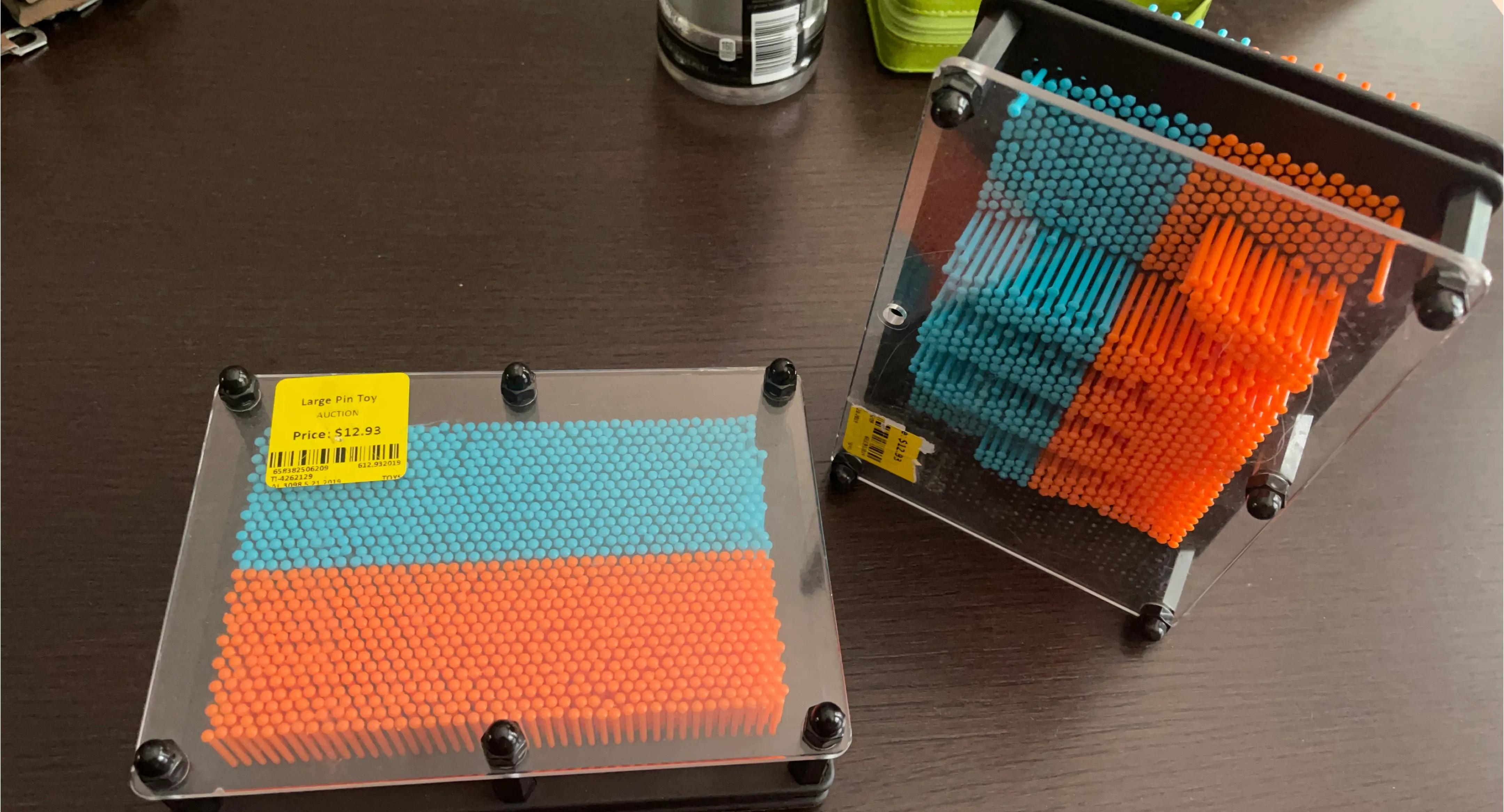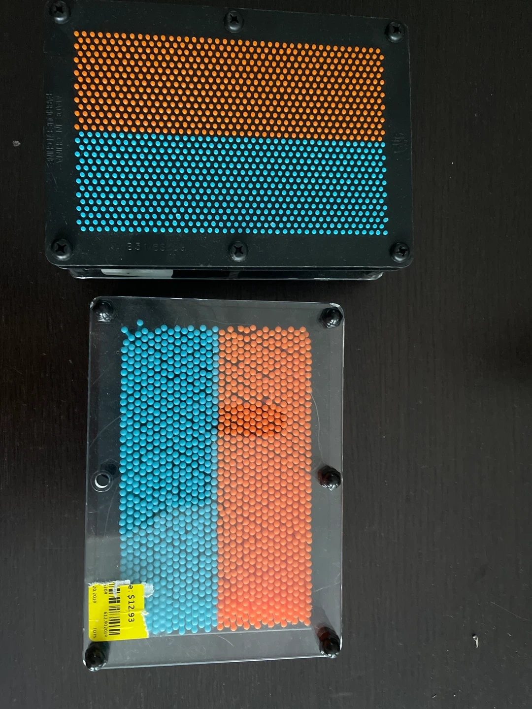 Here's a fun pin impression toy! It features orange and blue pins. Great for creative play and making fun shapes. Originally priced at $12.93(per one).