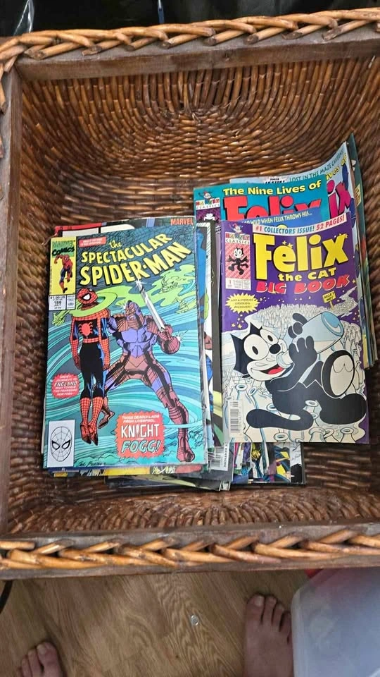 52 comic books, selling the whole bundle for $30. Mostly Marvel Comics, with some DC and some Felix The Cat)