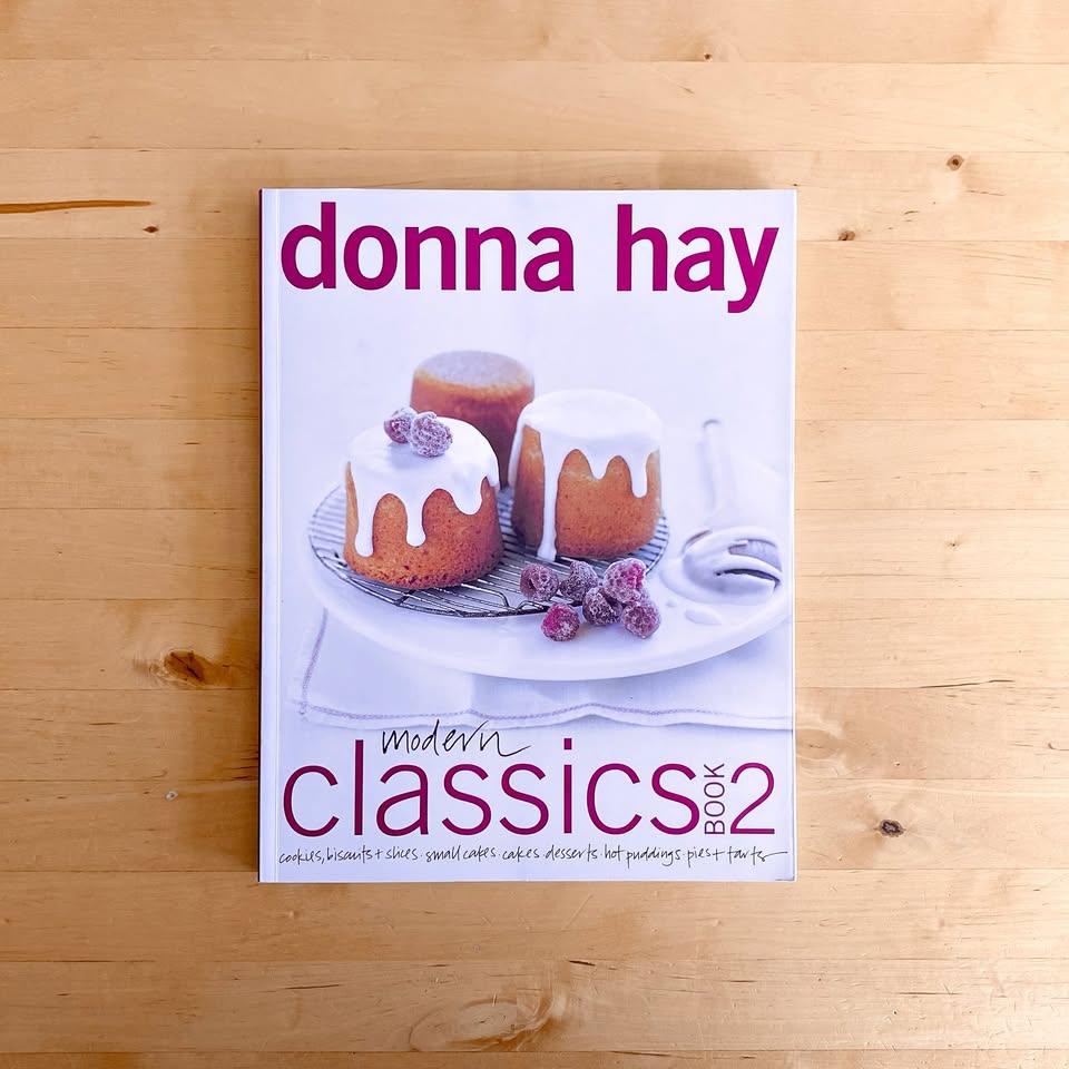Donna Hay Modern Classics Book 2: Cookies, Biscuits & Slices, Small Cakes, Cakes, Desserts, Hot Puddings, Pies & Tarts, remains in very good condition.