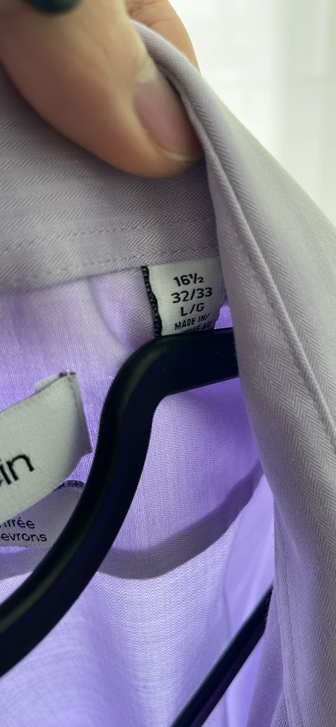 Selling a Calvin Klein dress shirt in a lovely lavender colour! It's a size Large (16½ 32/33). Great for work or a night out